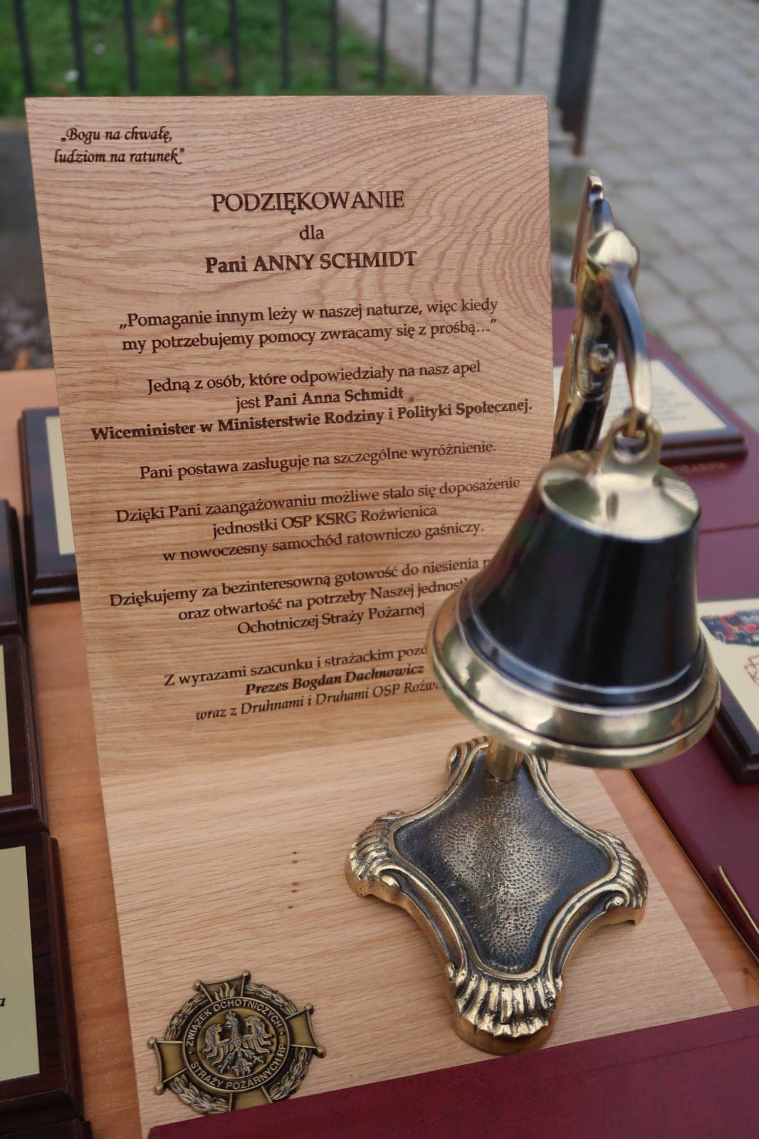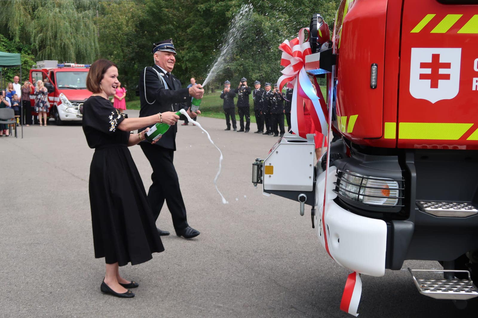 W uroczystej zbiórce wraz ze strażakami z jednostki OSP z Roźwienicy uczestniczyli: Pani Anna Schmidt - sekretarz stanu w Ministerstwie Rodziny i Polityki Społecznej, st.bryg. Daniel Dryniak - Zastępca Podkarpackiego Komendanta Wojewódzkiego PSP, Janusz Jabłoński - Zastępca Podkarpackiego Komendanta Wojewódzkiego PSP, st.bryg. Krzysztof Kowal - Komendant Powiatowy PSP w Jarosławiu, Stanisław Górski - Prezes Zarządu Oddziału Powiatowego ZOSP RP w Jarosławiu, przedstawiciele jednostek OSP z terenu Gminy Roźwienica oraz Wójt Gminy Roźwienica – Tomasz Kotliński wraz z pracownikami Urzędu Gminy i ks. Mirosław Mateja proboszcz parafii pod wezwaniem Podwyższenia Krzyża w Roźwienicy, który dokonał poświęcenia nowego samochodu.