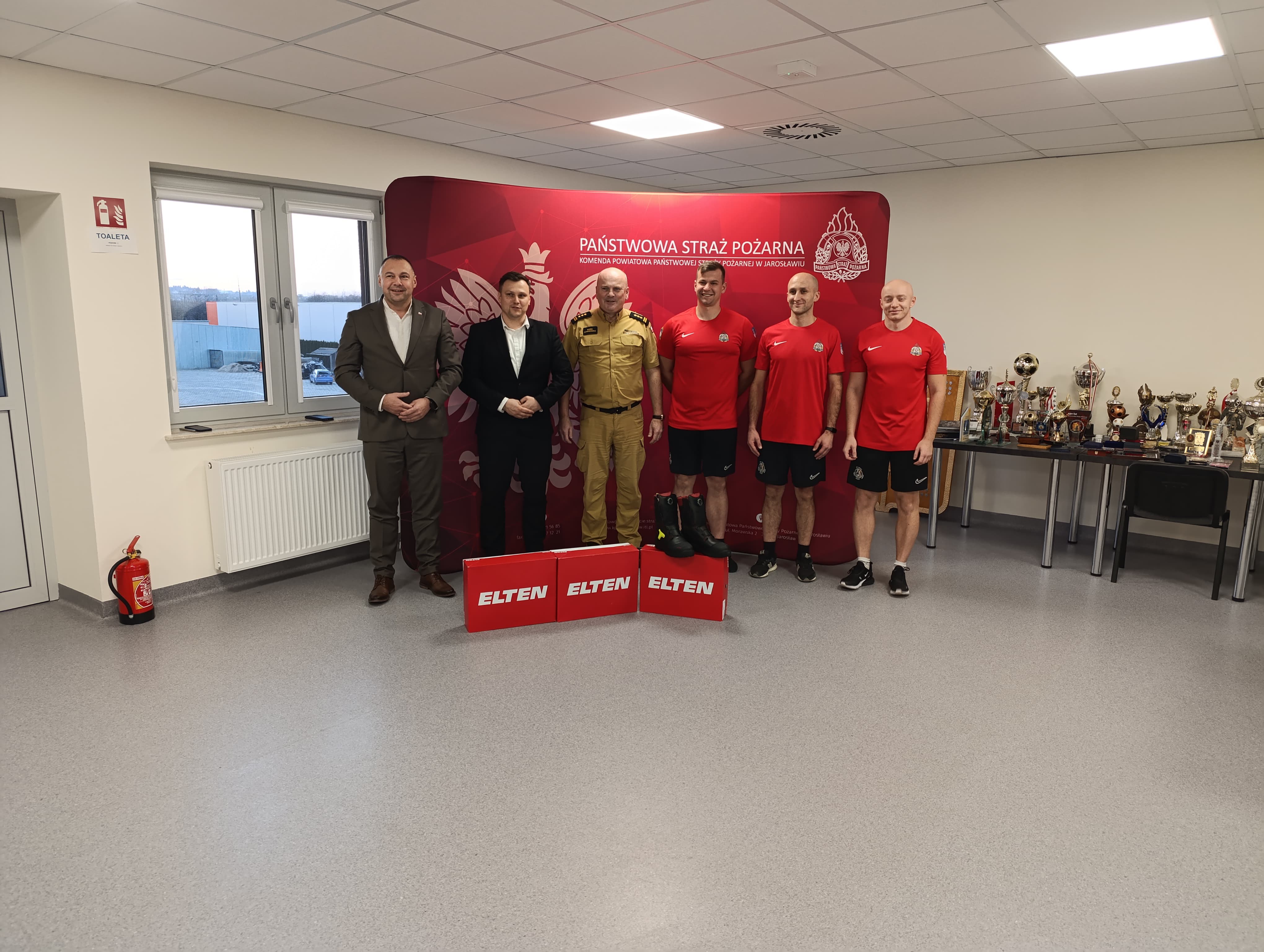 Przekazanie strojów sportowych dla funkcjonariuszy KP PSP w Jarosławiu