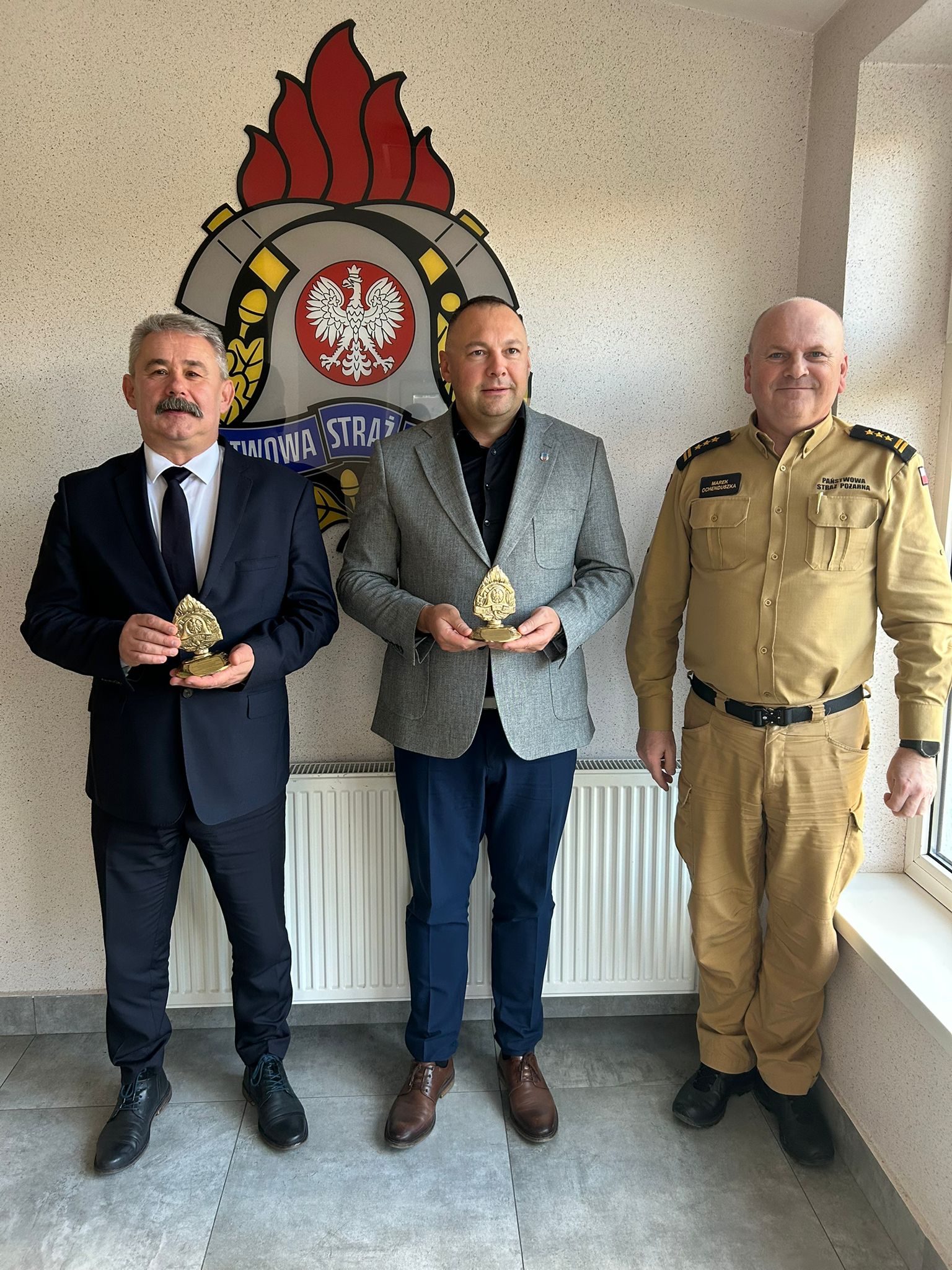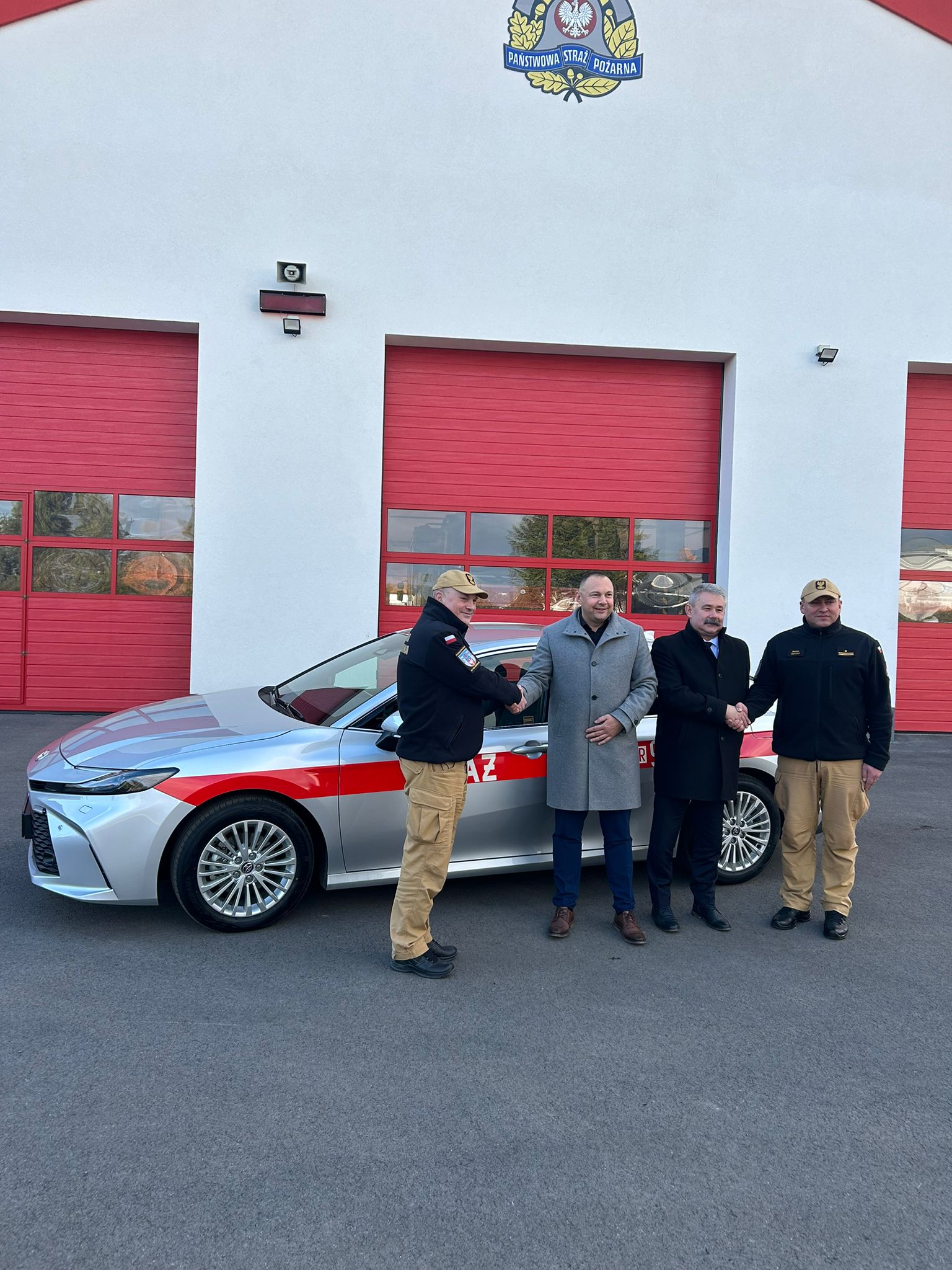 W dniu 29.01.2025 r. w KP PSP w Jarosławiu odbyło się spotkanie, podczas którego Komendant Powiatowy PSP w Jarosławiu st. bryg. Marek Ochenduszka podziękował osobiście Panu Kamilowi Dziukiewiczowi Staroście Jarosławskiemu oraz Panu Mariuszowi Reń Wójtowi Gminy Pawłosiów za wsparcie finansowe zakupu lekkiego samochodu operacyjnego marki Toyota Camry.
