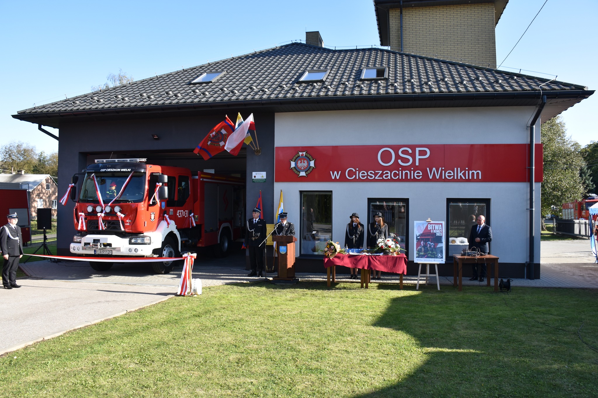 W dniu 8 października 2023 roku przed budynkiem remizy Ochotniczej Straży Pożarnej w Cieszacinie Wielkim odbyło się uroczyste przekazanie i poświęcenie nowego samochodu ratowniczo-gaśniczego dla jednostki OSP w Cieszacinie Wielkim. Fabrycznie nowy średni samochód ratowniczo-gaśniczy na podwoziu Renault i zabudowie pożarniczej wykonanej przez firmę Szczęśniak Pojazdy Specjalne zastąpił wysłużonego ciężkiego Jelcza. Zakup średniego samochodu ratowniczo-gaśniczego marki Renault o wartości 1 104 tys. złotych dla jednostki OSP Cieszacin Wielki sfinansowany został z dotacji Narodowego Funduszu Ochrony Środowiska i Gospodarki Wodnej w kwocie 450 tys. zł i środków Gminy Pawłosiów w kwocie ponad 629 tys. zł.