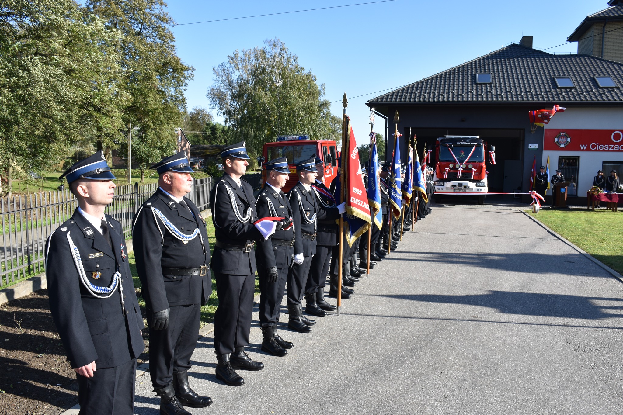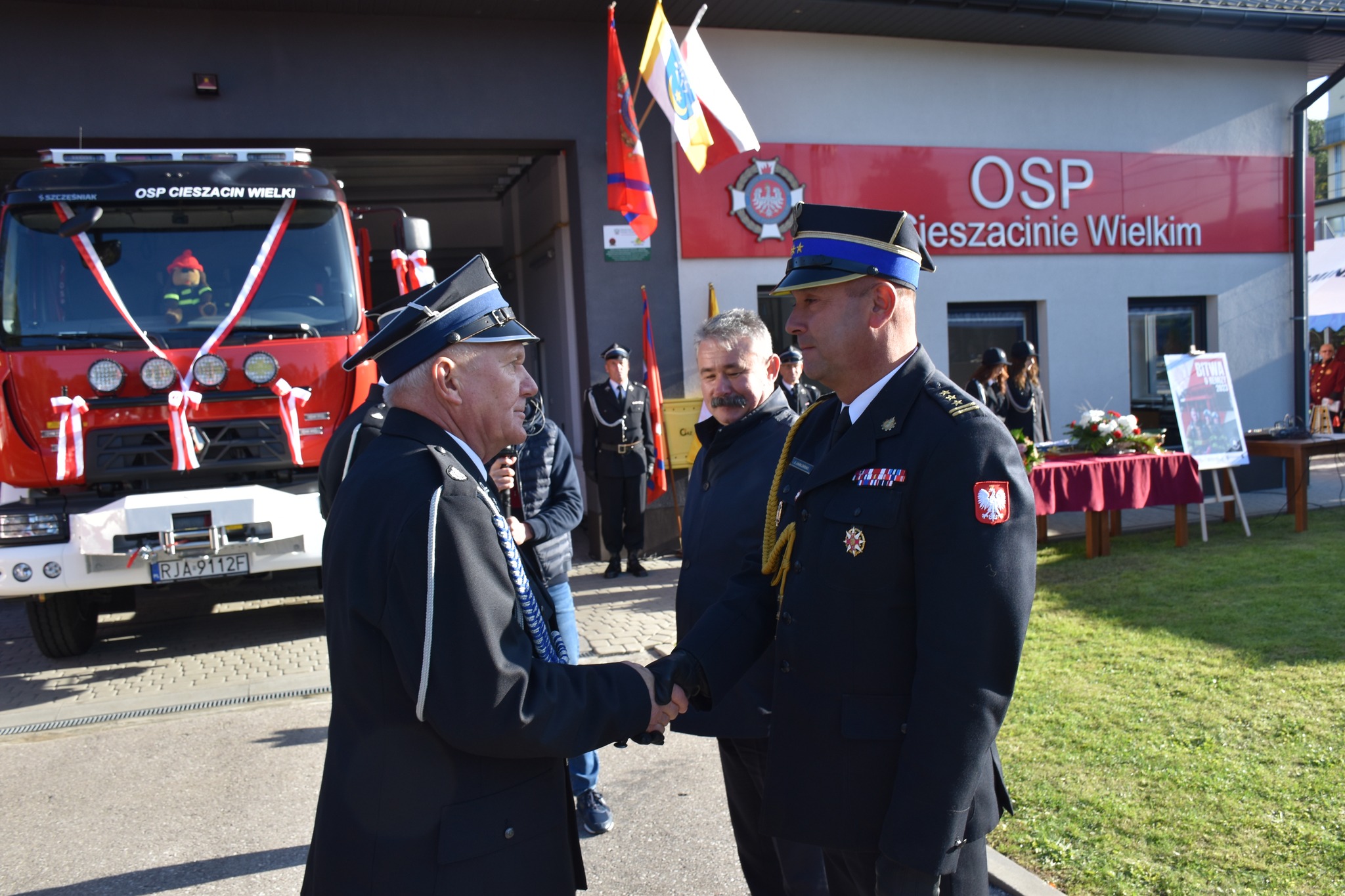 Uroczystość rozpoczęła się Mszą Świętą w kościele parafialnym pw. Niepokalanego Poczęcia Najświętszej Maryji Panny w Cieszacinie Wielkim, a następnie odbył się uroczysty apel z okazji oficjalnego przekazania i poświęcenie nowego samochodu przed remizą OSP Cieszacin Wielki. Apel rozpoczął się złożeniem meldunku, który od dowódcy uroczystości, a jednocześnie Prezesa Zarządu Gminnego ZOSP RP dh Kazimierza Mirka odebrał Zastępca Podkarpackiego Komendanta Wojewódzkiego PSP st. bryg. Janusz Jabłoński. Następnie odbyło się uroczyste wciągnięcie flagi państwowej na maszt i odegranie hymnu państwowego. Po uroczystym przecięciu wstęgi duchowni dokonali poświęcenia nowego samochodu pożarniczego, a także wyremontowanego budynku remizy oraz figurki św. Floriana. Uroczystość ta była doskonałą okazją do wyróżnienia Medalami „Za Zasługi dla Pożarnictwa” oraz Odznakami „Strażak Wzorowy” zasłużonych druhów OSP w Cieszacinie Wielkim.
