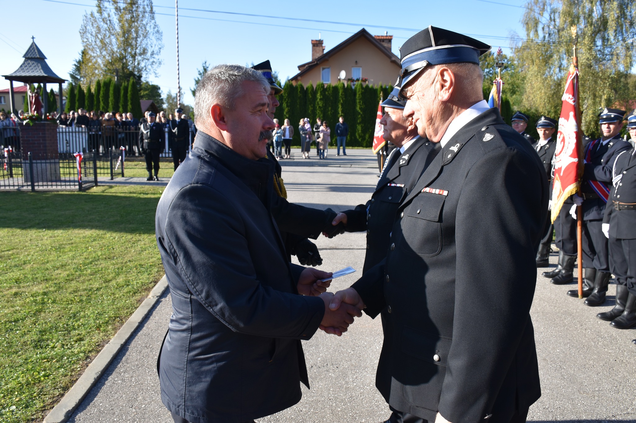 W uroczystości uczestniczyli m.in.: st. bryg. Janusz Jabłoński - Zastępca Podkarpackiego Komendanta Wojewódzkiego PSP, mł. bryg. Paweł Szkoła – Zastępca Komendanta Powiatowego PSP w Jarosławiu, dh Stanisław Górski - Prezes Zarządu Oddziału Powiatowego ZOSP RP w Jarosławiu, Wójt Gminy Pawłosiów Mariusz Reń wraz z pracownikami Urzędu Gminy, ks. prob. Tomasz Ruchała, ks. prob. dh Jackek Czerkas, a także przedstawiciele jednostek OSP z terenu Gminy Pawłosiów wraz z pocztami sztandarowymi.