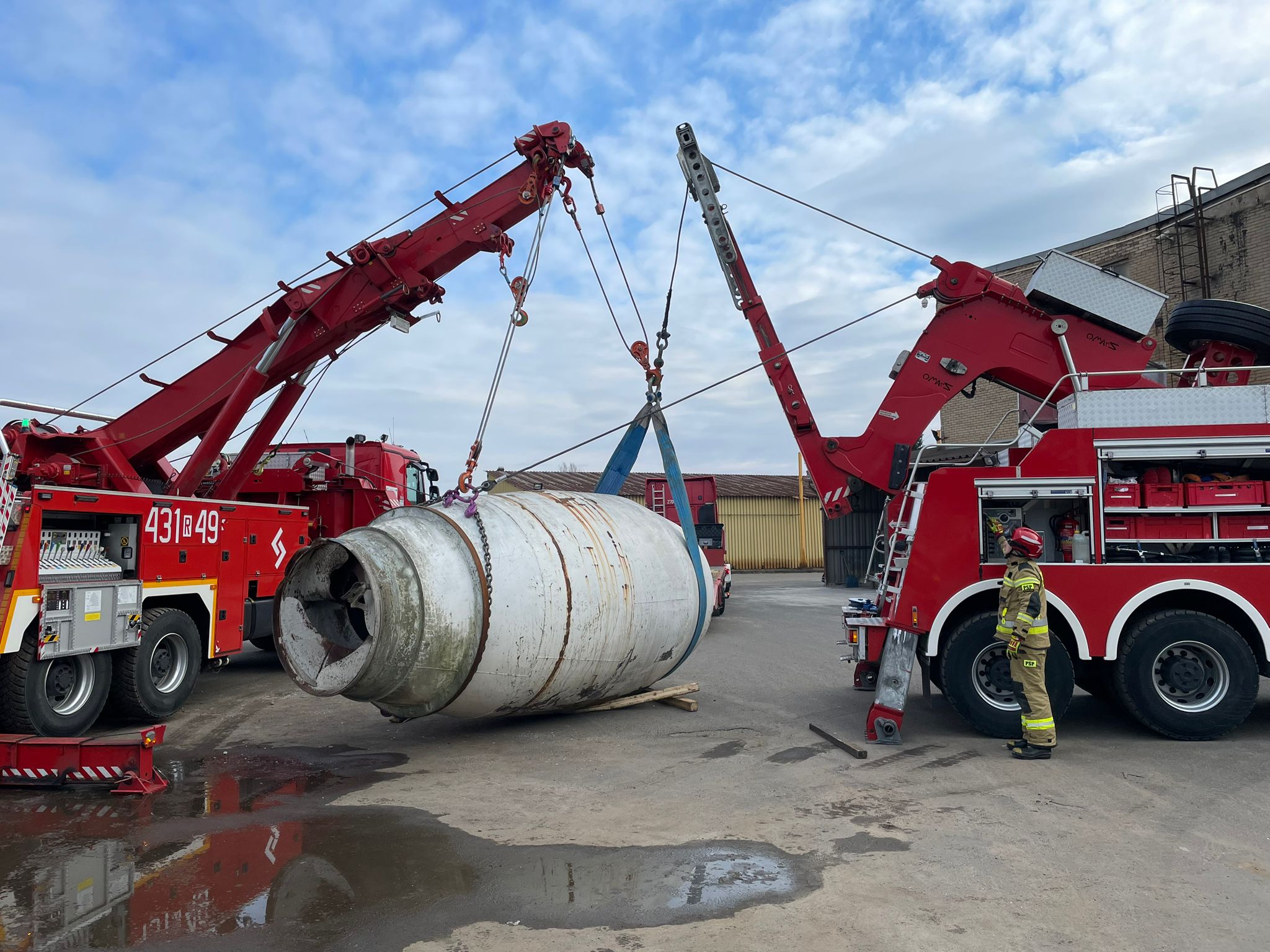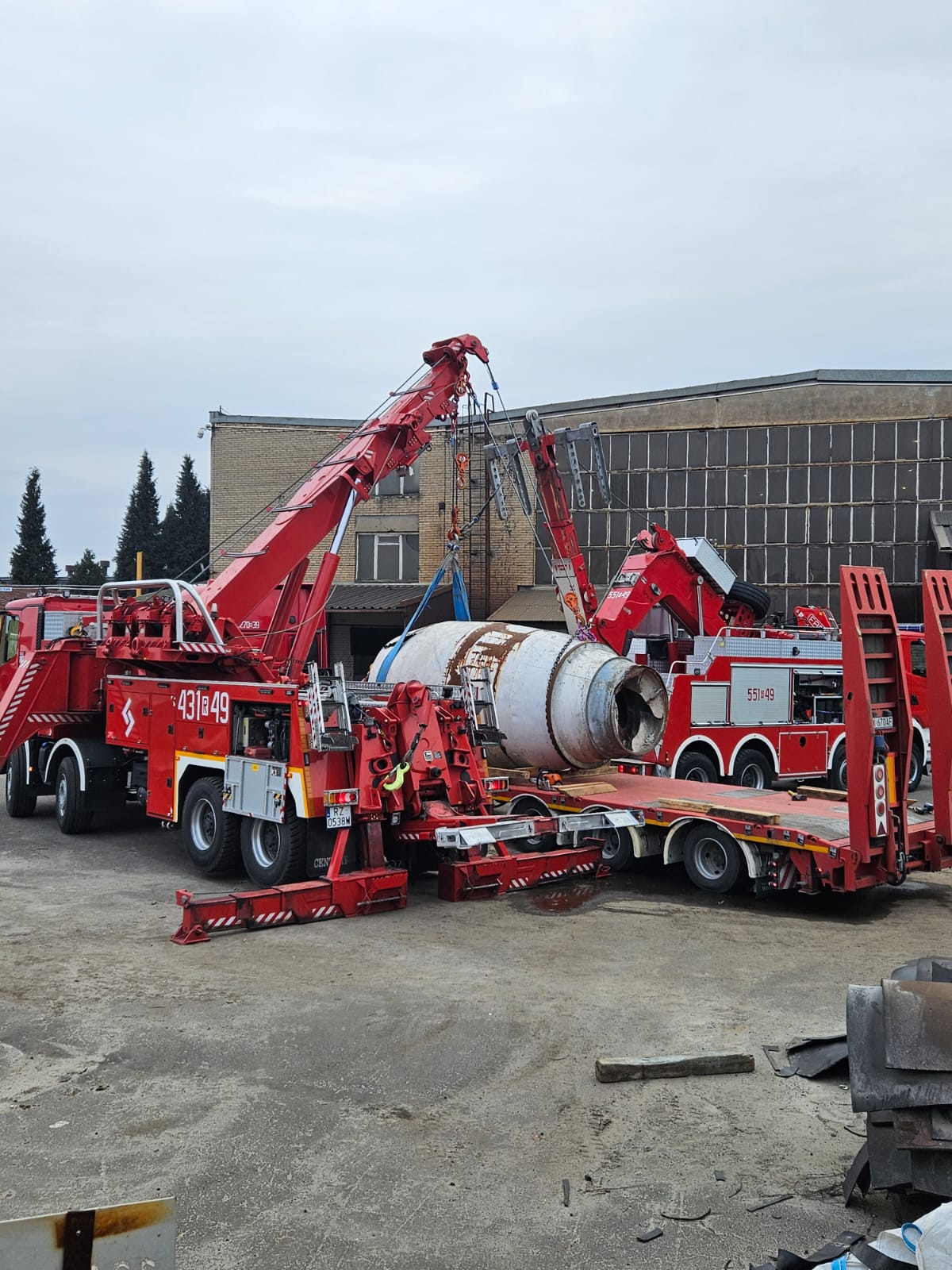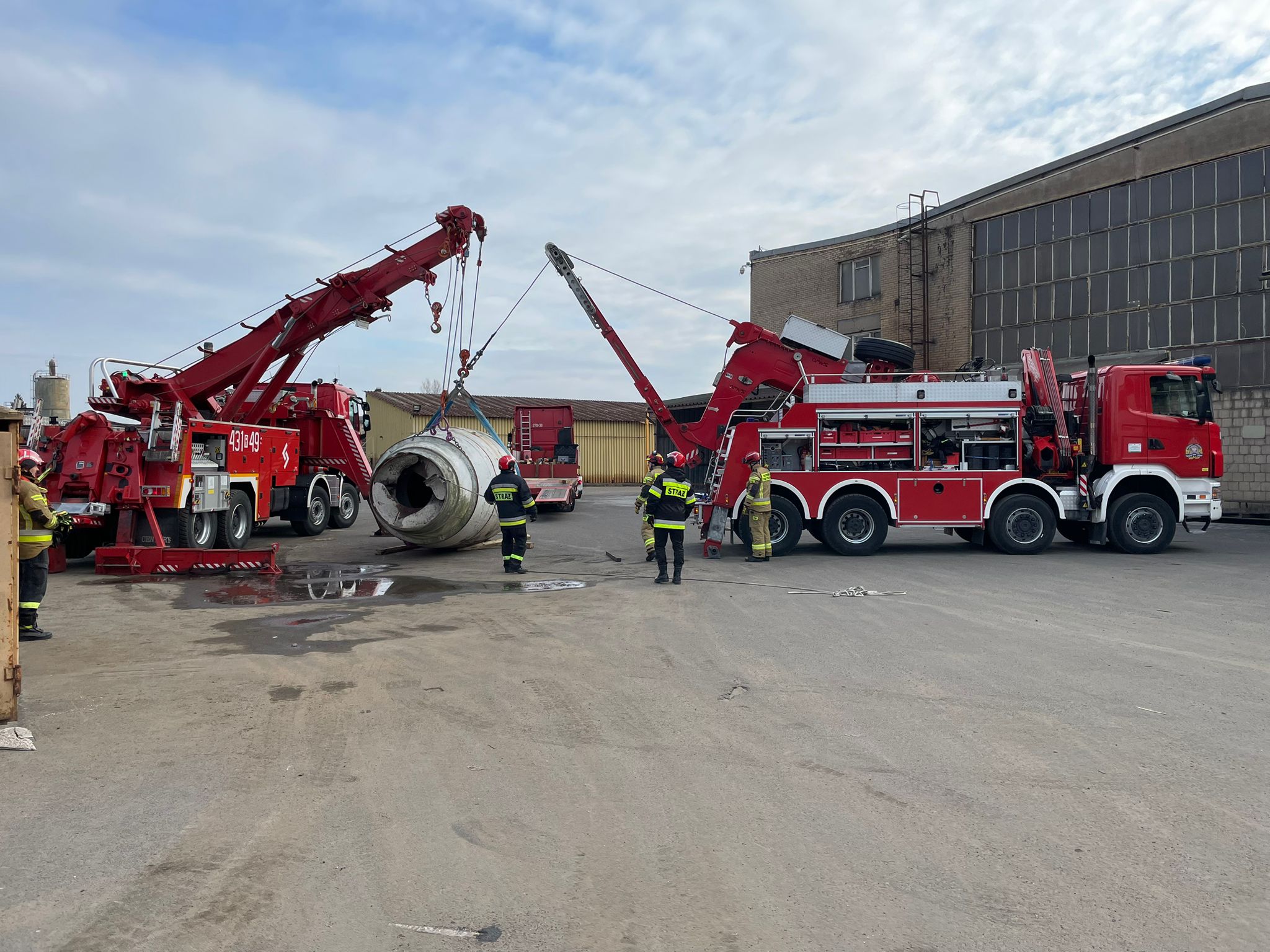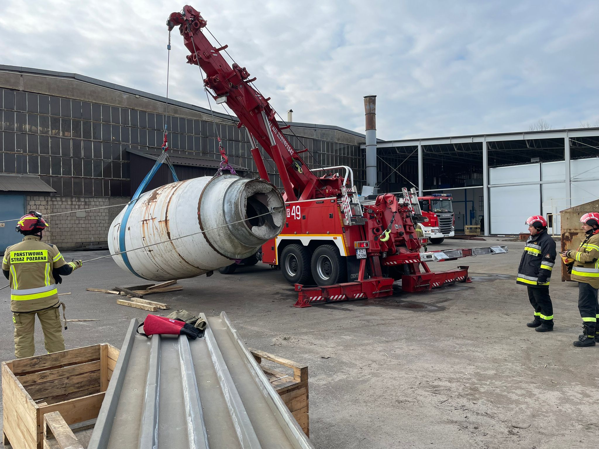 W dniu 13 lutego br. Komenda Wojewódzka Państwowej Straży Pożarnej w Rzeszowie, we współpracy z Komendą Powiatową Państwowej Straży Pożarnej w Jarosławiu i Stalowej Woli oraz Akademią Pożarniczą Państwowej Straży Pożarnej w Warszawie, zorganizowała warsztaty tematyczne z zakresu przemieszczania gabarytów przy użyciu ciężkich pojazdów ratownictwa technicznego. Warsztaty odbyły się na terenie Fabryki Maszyn w Leżajsku przy ul. Hutniczej 1. Zakład specjalizuje się w produkcji hydraulicznych betonomieszarek samochodowych oraz wózków i ciągników akumulatorowych. W zajęciach uczestniczyły Specjalistyczne Grupy Ratownictwa Technicznego z Jarosławia i Stalowej Woli.