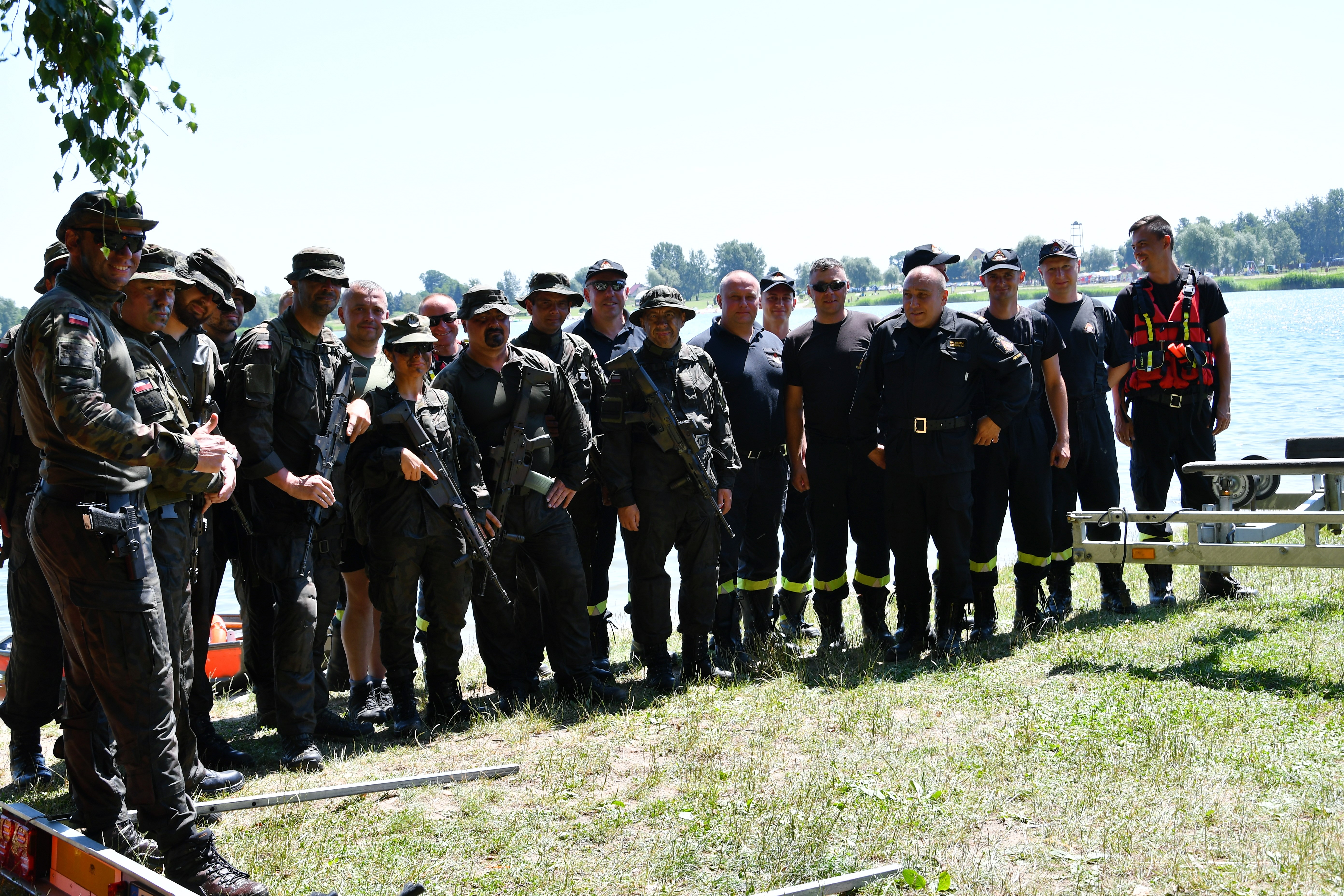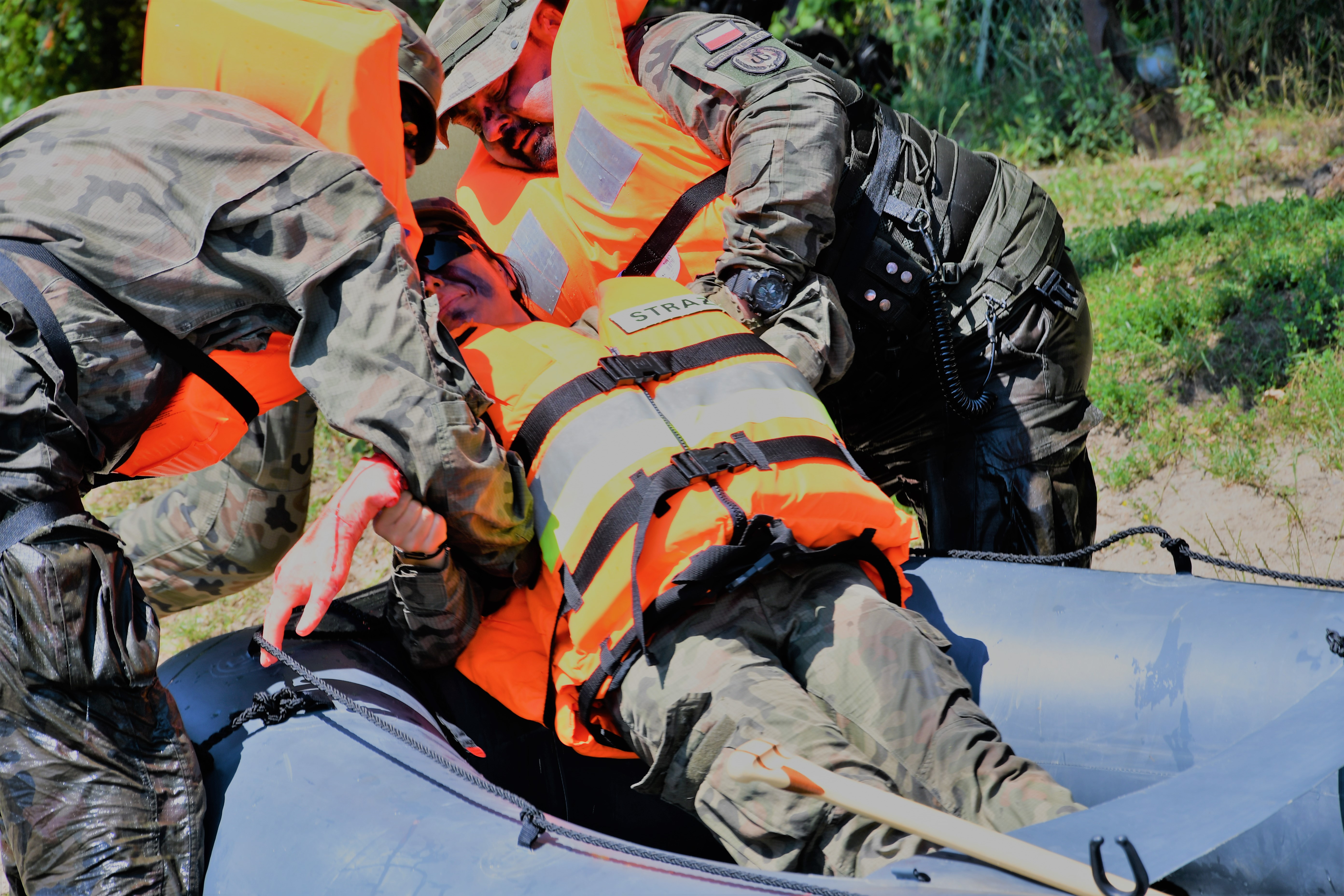 Ćwiczących żołnierzy ubezpieczała na łodziach płaskodennych grupa ratowniczo-ewakuacyjna z Państwowej Straży Pożarnej wyposażona w specjalistyczny sprzęt do udzielania przedlekarskiej pomocy medycznej z ratownikiem medycznym na pokładzie.