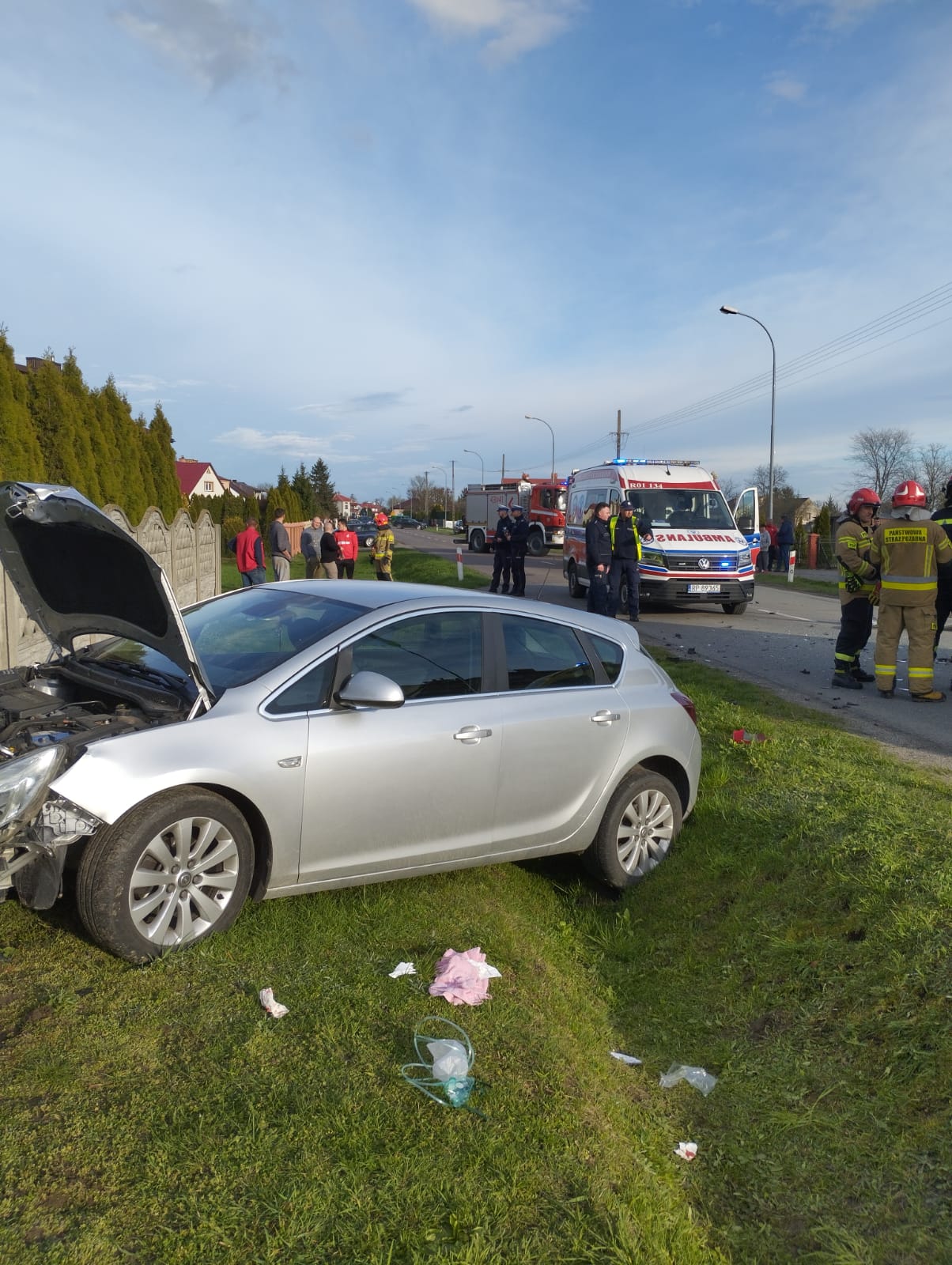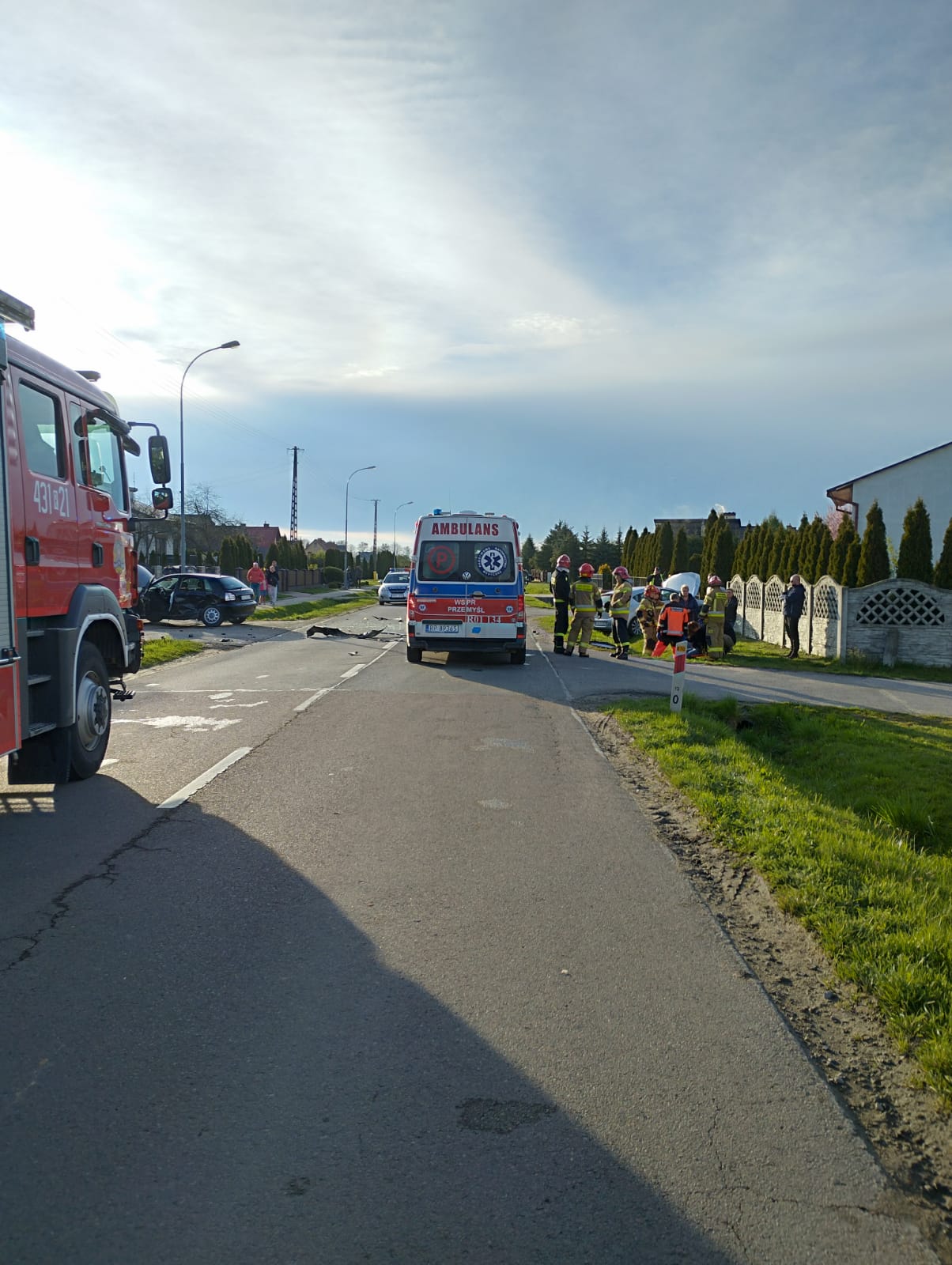 W wyniku dokonanego rozpoznania stwierdzono, że jadący prawidłowo drogą główną Opel Astra uderzył w bok włączającego się do ruchu z drogi podporządkowanej Audi A3. W obu pojazdach podróżowało łącznie 4 osoby. Trzy opuściły uszkodzone samochody samodzielnie. Natomiast 16 letni pasażer siedzący na tylnym siedzeniu Audi w wyniku bocznego uderzenia stracił przytomność. To zdarzenie jako pierwsi zauważyli funkcjonariusze Policji z posterunku w Wiązownicy, którzy pełnili służbę w tym rejonie. Natychmiast ewakuowali nieprzytomnego i udzielili mu pierwszej pomocy przedmedycznej. Strażacy z OSP Wiązownica, zabezpieczyli miejsce zdarzenia a następnie przystąpili do badania urazowego pozostałych uczestników wypadku.