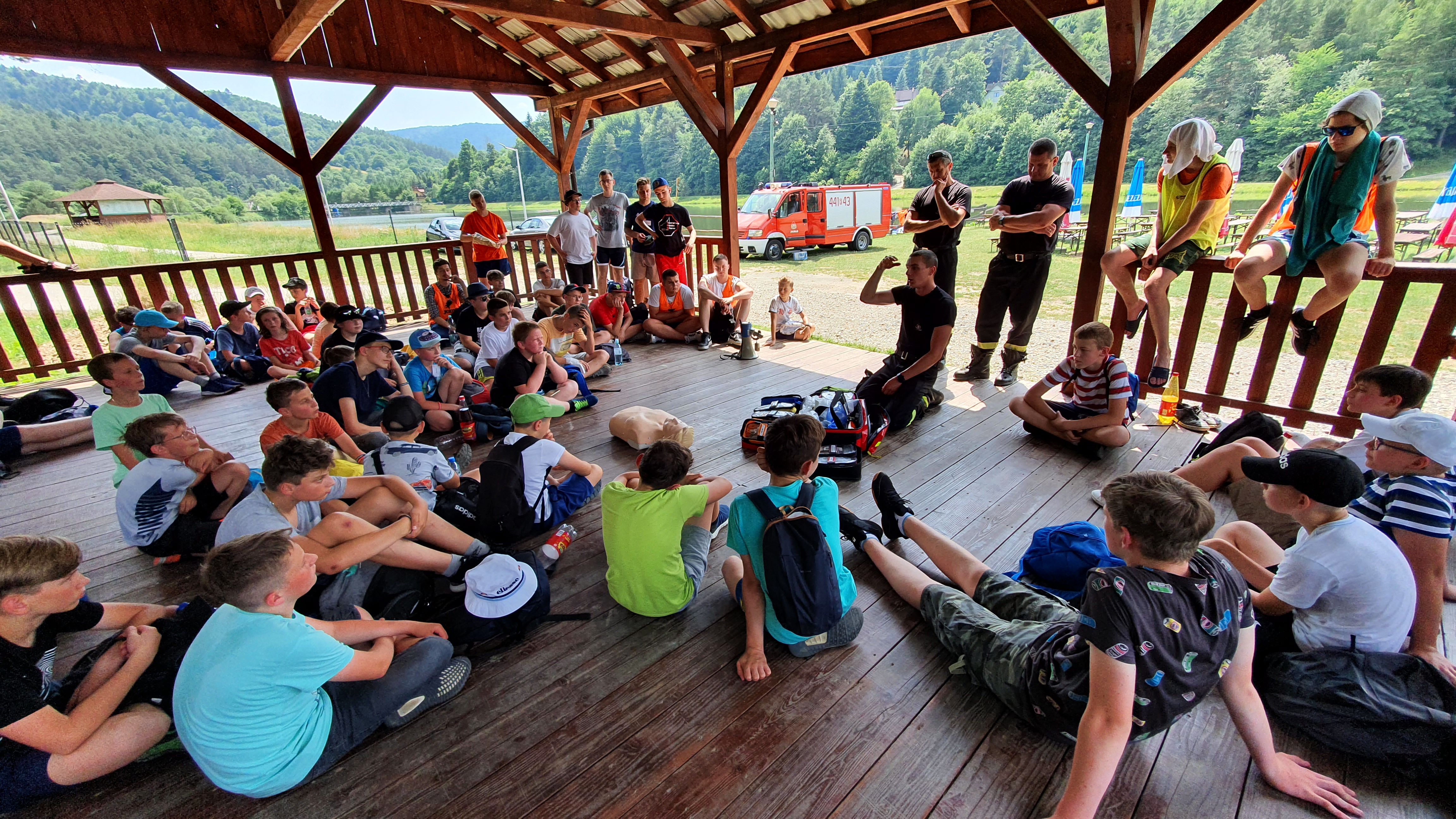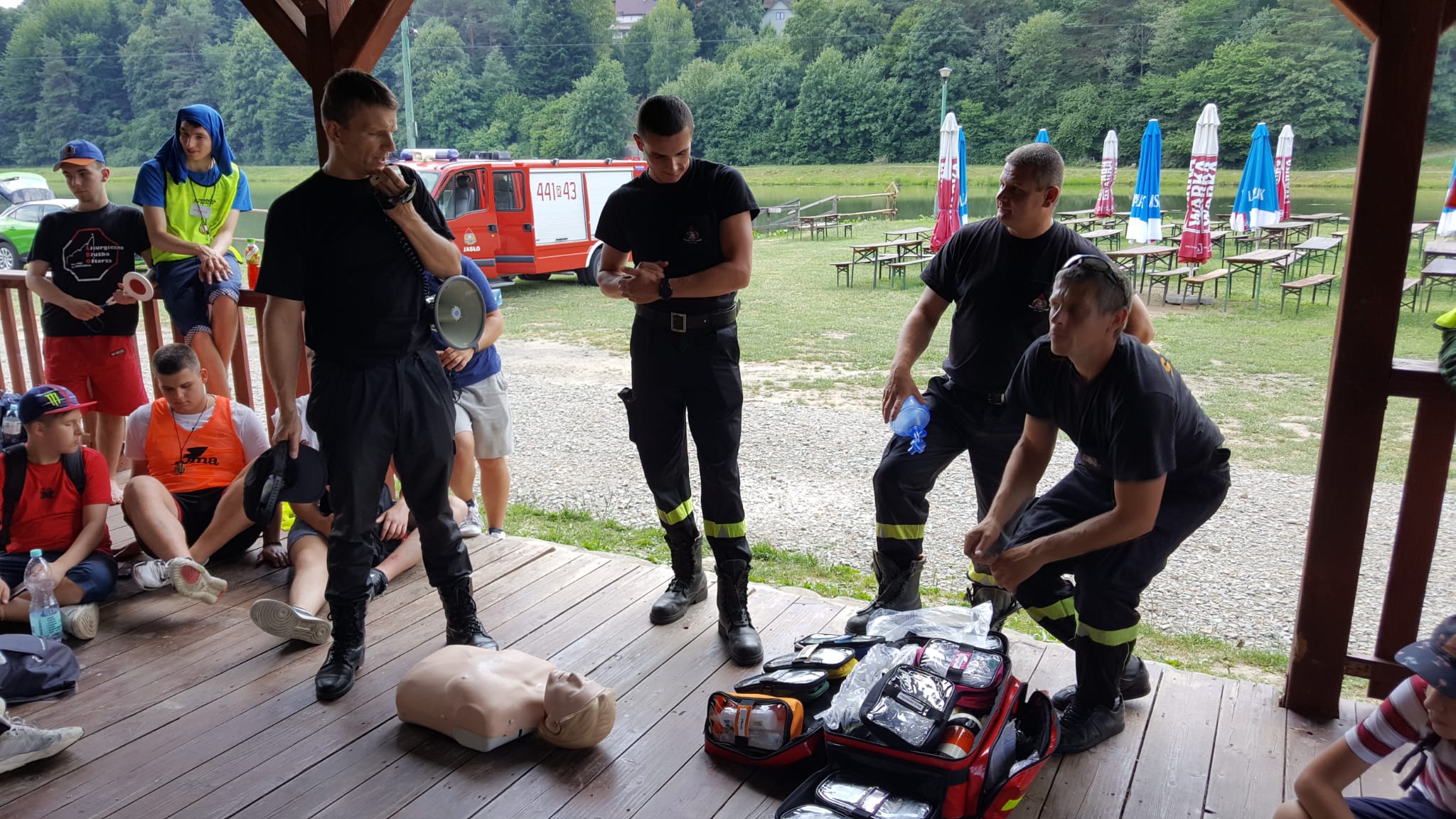 30 czerwca 2022 r. w Krempnej przy zalewie wodnym odbyło się spotkanie funkcjonariuszy z Komendy Powiatowej Państwowej Straży Pożarnej z Jasła z uczestnikami turnusu wakacyjnego Liturgicznej Służby Ołtarza "Wakacje z Bogiem 2022". W ramach spotkania strażacy z Jednostki Ratowniczo-Gaśniczej PSP z Jasła przy wsparciu strażaków-ochotników z jednostki OSP Krempna przeprowadzili akcję edukacyjno-szkoleniową przekazując i wyjaśniając uczestnikom obozu dobre praktyki podczas wypoczynku nad wodą. Strażak udzielał także instruktażu z zakresu pierwszej pomocy, na którym poruszone zostały m.in. aspekty postępowania z osobami podtopionymi, u których wystąpiło nagłe zatrzymanie krążenia, jak również zaprezentował sprzęt będący na wyposażeniu jednostki OSP Krempna funkcjonującej w KSRG. W związku z wysoką temperaturą strażacy rozstawili kurtynę wodną, dzięki której dzieci mogły się schłodzić, a dzięki uprzejmości właściciela terenu uczestnicy obozu mogli także skorzystać z darmowej przejażdżki rowerkami wodnymi.