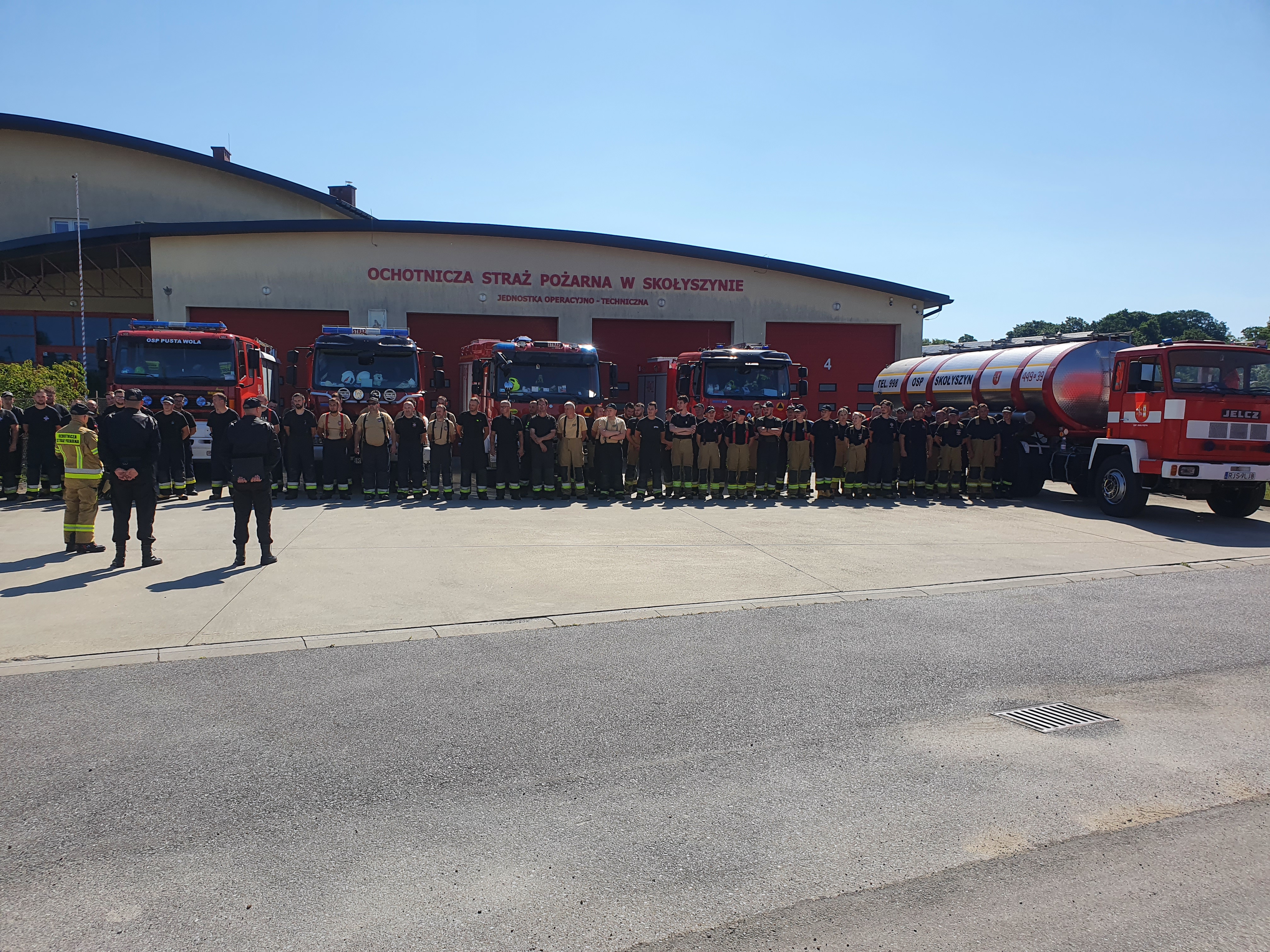 27 czerwca 2022 roku na obiekcie PPHU Centrum w miejscowości Kunowa, w gminie Skołyszyn przeprowadzono ćwiczenia gminne dla jednostek OSP i PSP. Ćwiczony epizod zakładał ugaszenie pozorowanego pożaru w obiektach firmy podając 8 prądów wody w natarciu. Punkt czerpania wody zorganizowano na rzece Ropa, wodę do pożaru dostarczano systemem mieszanym. W zdarzeniu ucierpiało dwóch pracowników firmy. Strażacy OSP udzielili im kwalifikowanej pomocy medycznej. Podsumowania ćwiczeń dokonał zastępca komendanta powiatowego PSP w Jaśle bryg. Jan Szeląg.