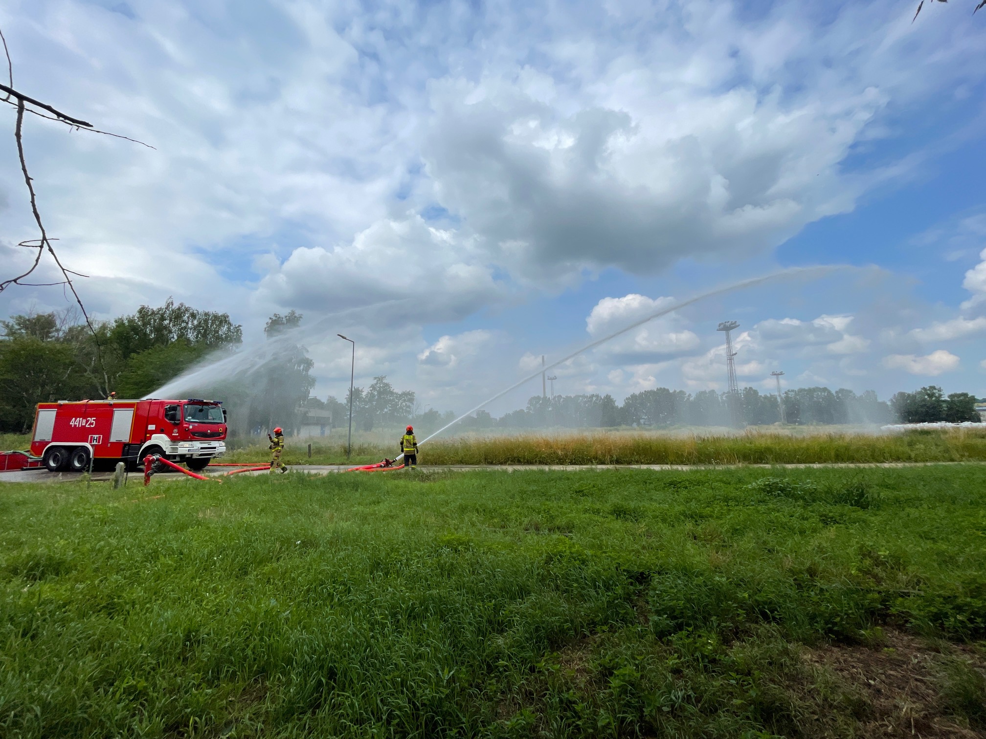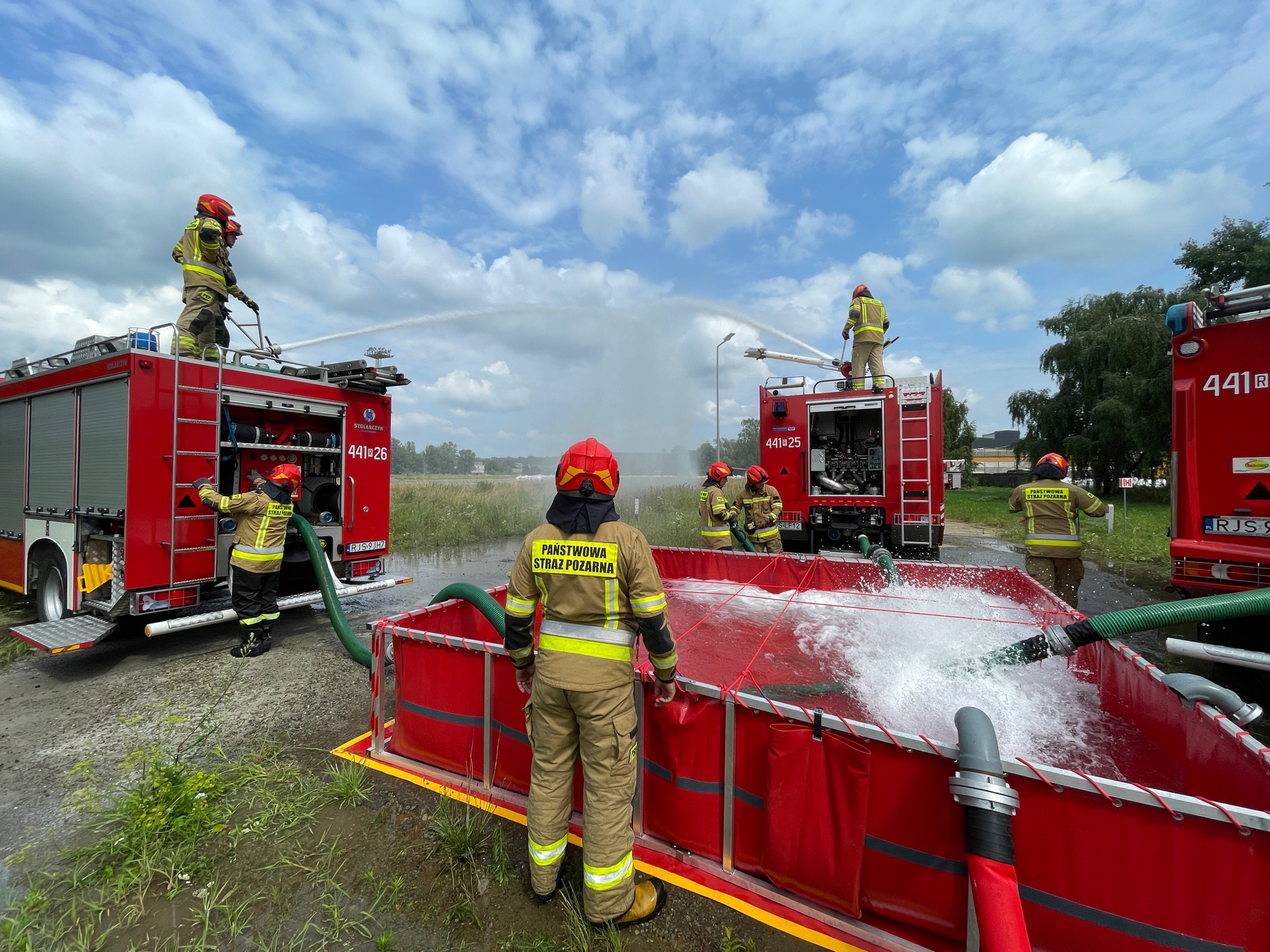 W przyjętym założeniu zorganizowano wysokowydajne natarcie z działek samochodowych i działka przenośnego w oparciu o bufor wodny (zbiornik brezentowy) zasilany z sieci hydrantowej. W ćwiczeniach udział brali pracownicy odpowiedzialni za ochronę przeciwpożarową zakładu.