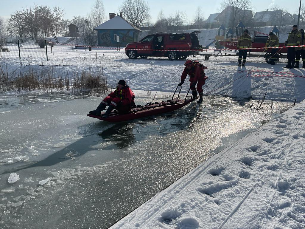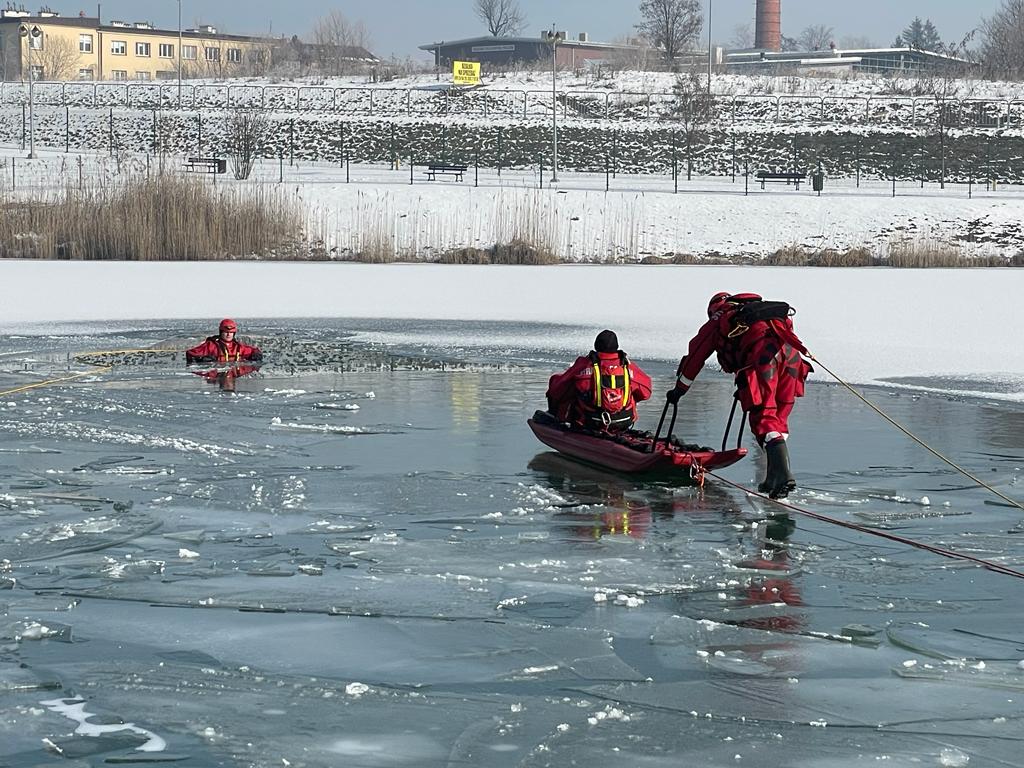 Sprzyjająca aura zimowa pozwoliła strażakom z Jednostki Ratowniczo Gaśniczej PSP w Jaśle zorganizować ćwiczenia praktyczne z zakresu ratownictwa lodowego na zamarzniętym akwenie wodnym. Strażacy doskonalili się z obsługi sprzętu do ratownictwa lodowego, ewakuacji różnymi technikami osób poszkodowanych, pod którymi załamał się lód. Ponadto ratownicy trenowali umiejętność samodzielnego wyjścia z przerębla i lodowatej wody na kruchym, pękającym i załamującym się lodzie. Do ćwiczeń wykorzystano sprzęt znajdujący się na wyposażeniu JRG w Jaśle - specjalistyczne sanie lodowe, rzutki ratownicze, koła ratunkowe.