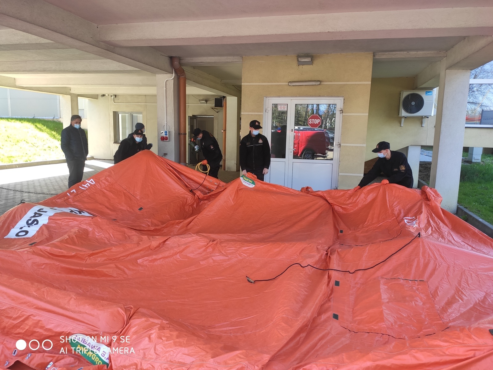 20 kwietnia 2020 r. strażacy z Komendy Powiatowej Państwowej Straży Pożarnej w Jaśle postawili namiot przed jasielskim szpitalem, który będzie pełnił funkcję polowej izby przyjęć.