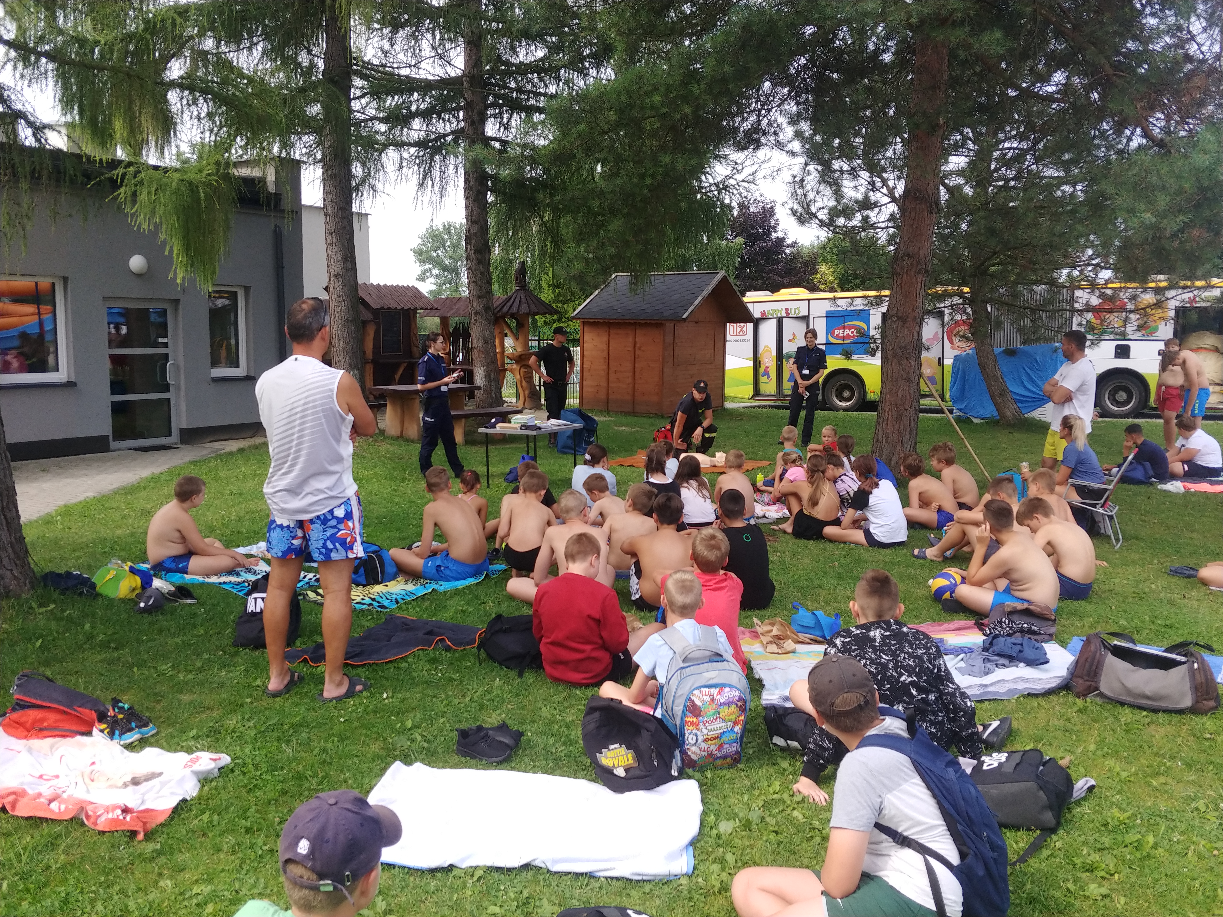 23 lipca na terenie jasielskiego MOSiRu, przy otwartym basenie, odbyła się prelekcja dla wypoczywających dzieci i młodzieży. W spotkaniu uczestniczyli m.in. asp. Barbara Pawłowska z Komendy Powiatowej Policji w Jaśle oraz asp. Rączka Mateusz z Komendy Powiatowej Państwowej Straży Pozarnej w Jaśle. W trakcie zajęć omówiono bezpieczne spędzanie czasu nad wodą, przede wszystkim unikanie niestrzeżonych kąpielisk na wyrobiskach, stawach i rzekach. Prelegenci podkreślali, aby do zabaw nad wodą wybierać miejsca bezpieczne, pod nadzorem dorosłych i ratowników. Ponadto funkcjonariusze jasielskiej komendy omówili i zaprezentowali zasady udzielania pierwszej pomocy poszkodowanym.