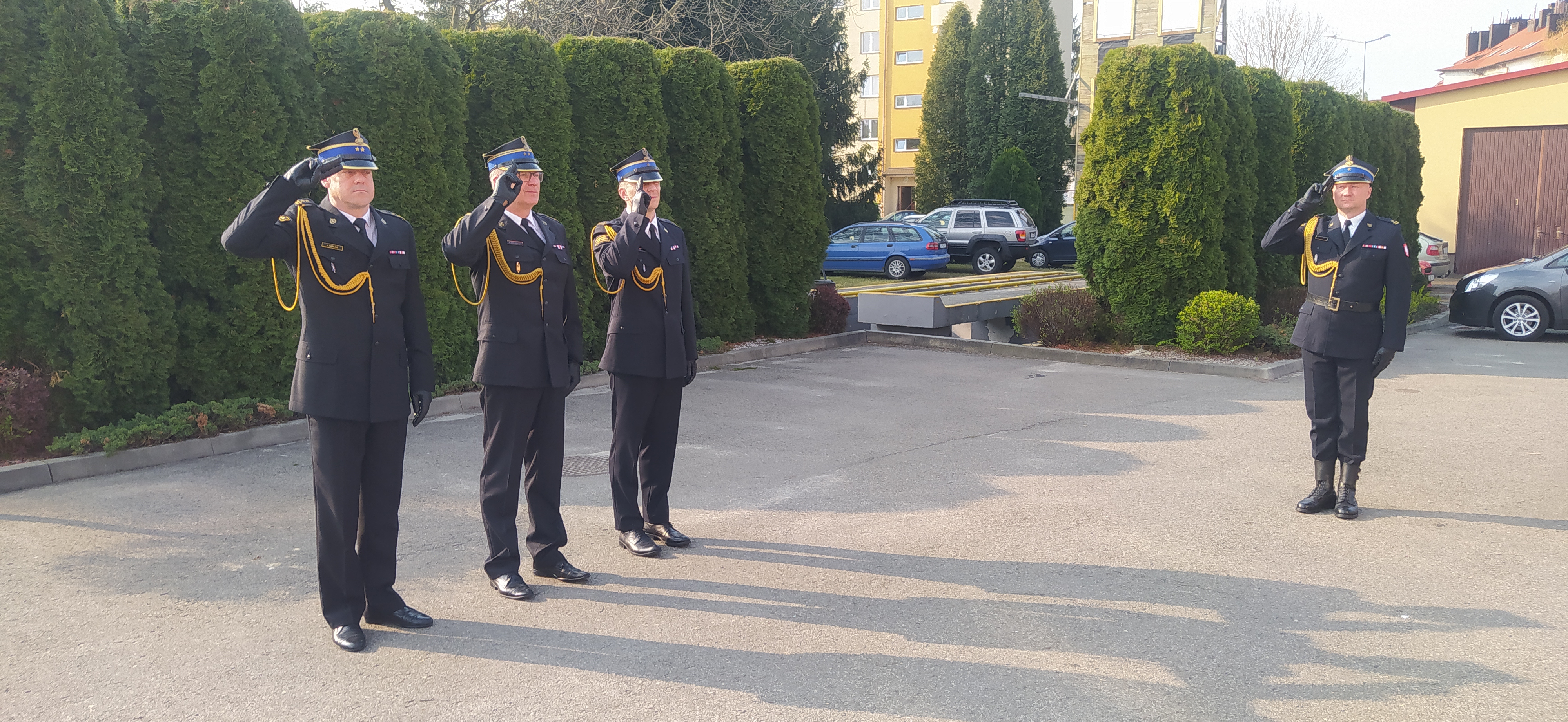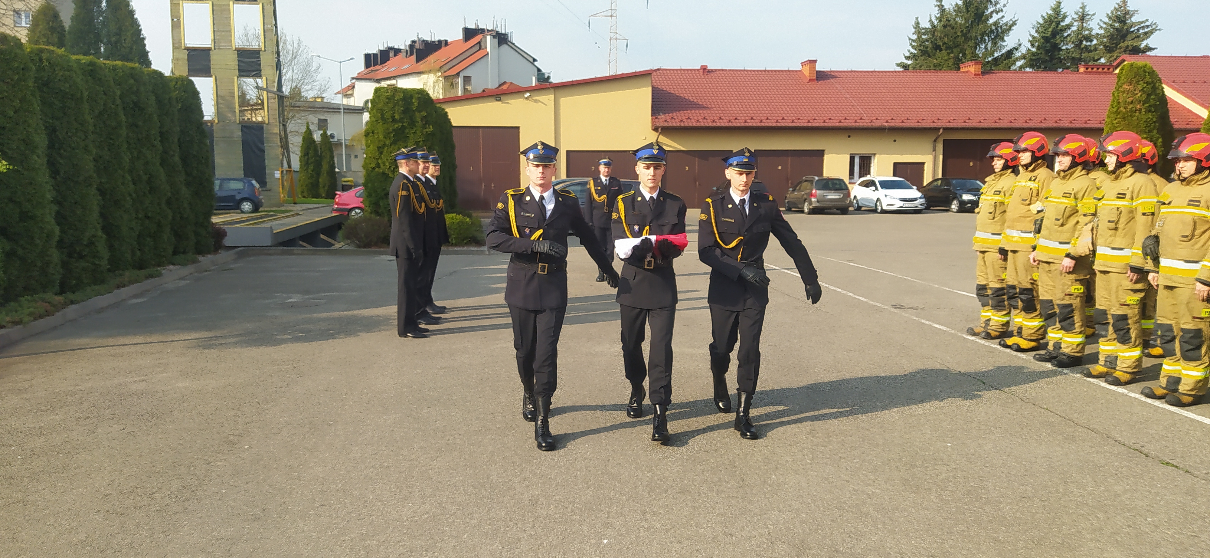 Po podniesieniu flagi oraz odegraniu hymnu Rzeczypospolitej strażacy z JRG przeprowadzili zmianę służby.