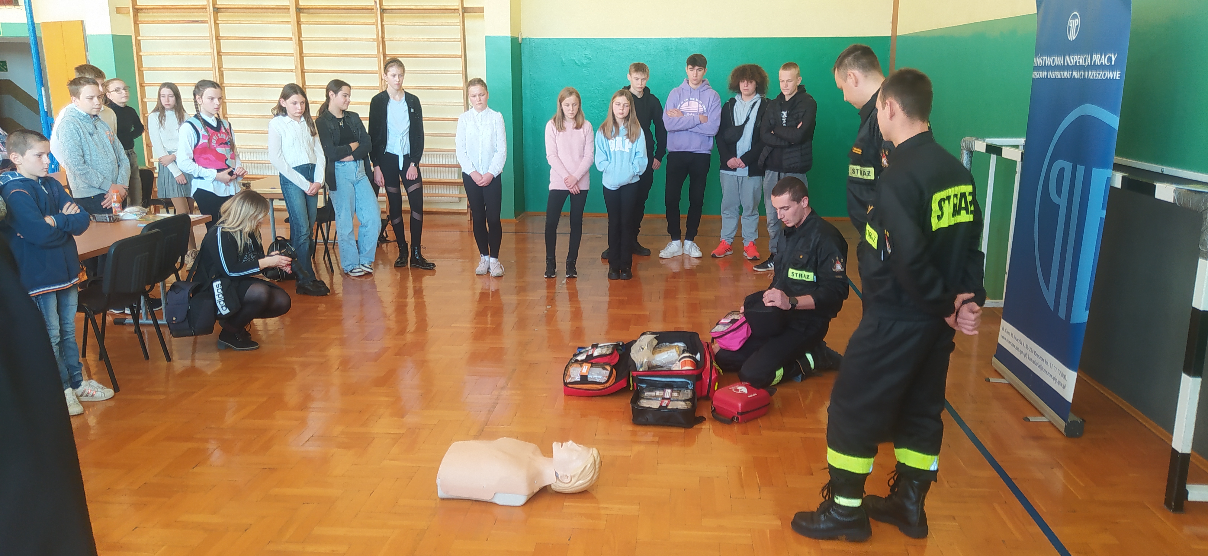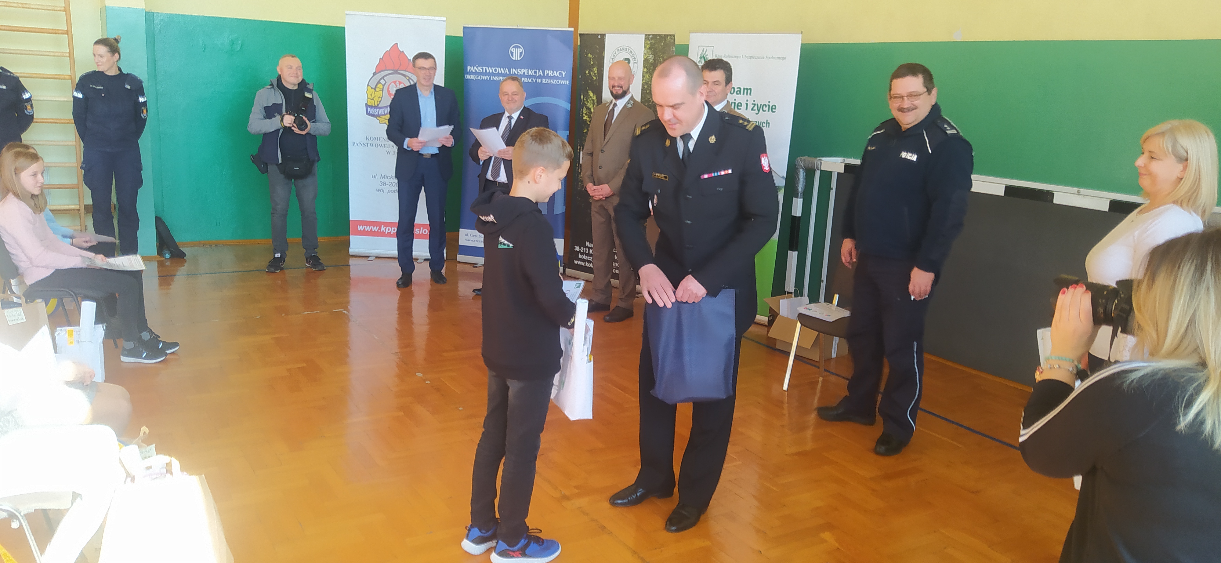W przerwie konkursu dowódca JRG mł. bryg. Edward Gronek przeprowadził prelekcję na temat Kampanii „Czujka na straży Twojego bezpieczeństwa”. W oczekiwaniu na wyniki strażacy z JRG przeprowadzili pokaz udzielania pierwszej pomocy przedmedycznej, co spotkało się z dużym zainteresowaniem uczestników.