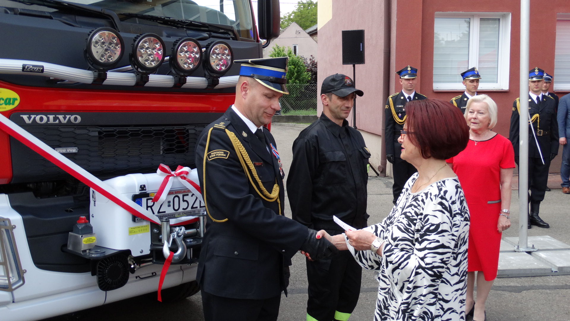 Podczas uroczystości przekazano dla Komendy Powiatowej PSP w Jaśle nowy średni samochód ratowniczo-gaśniczy GBA 2,5/16 marki Volvo.