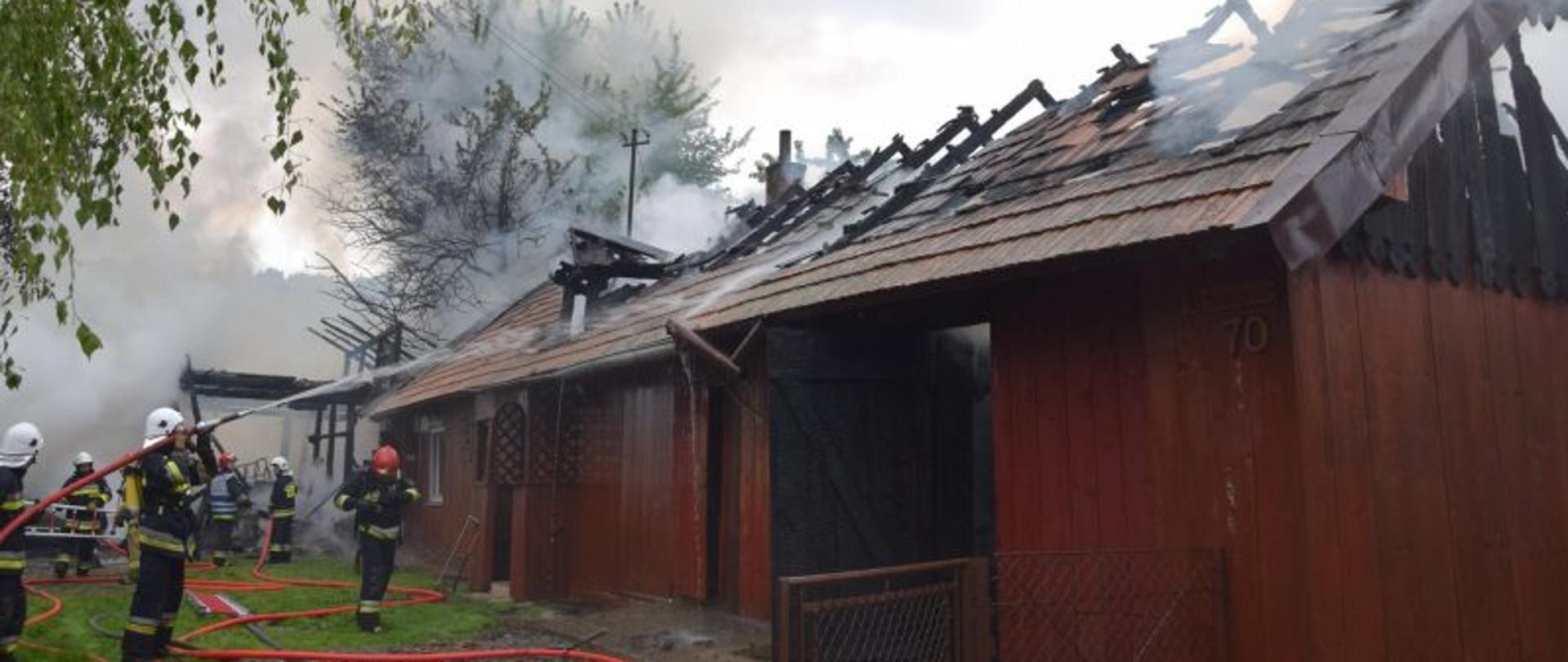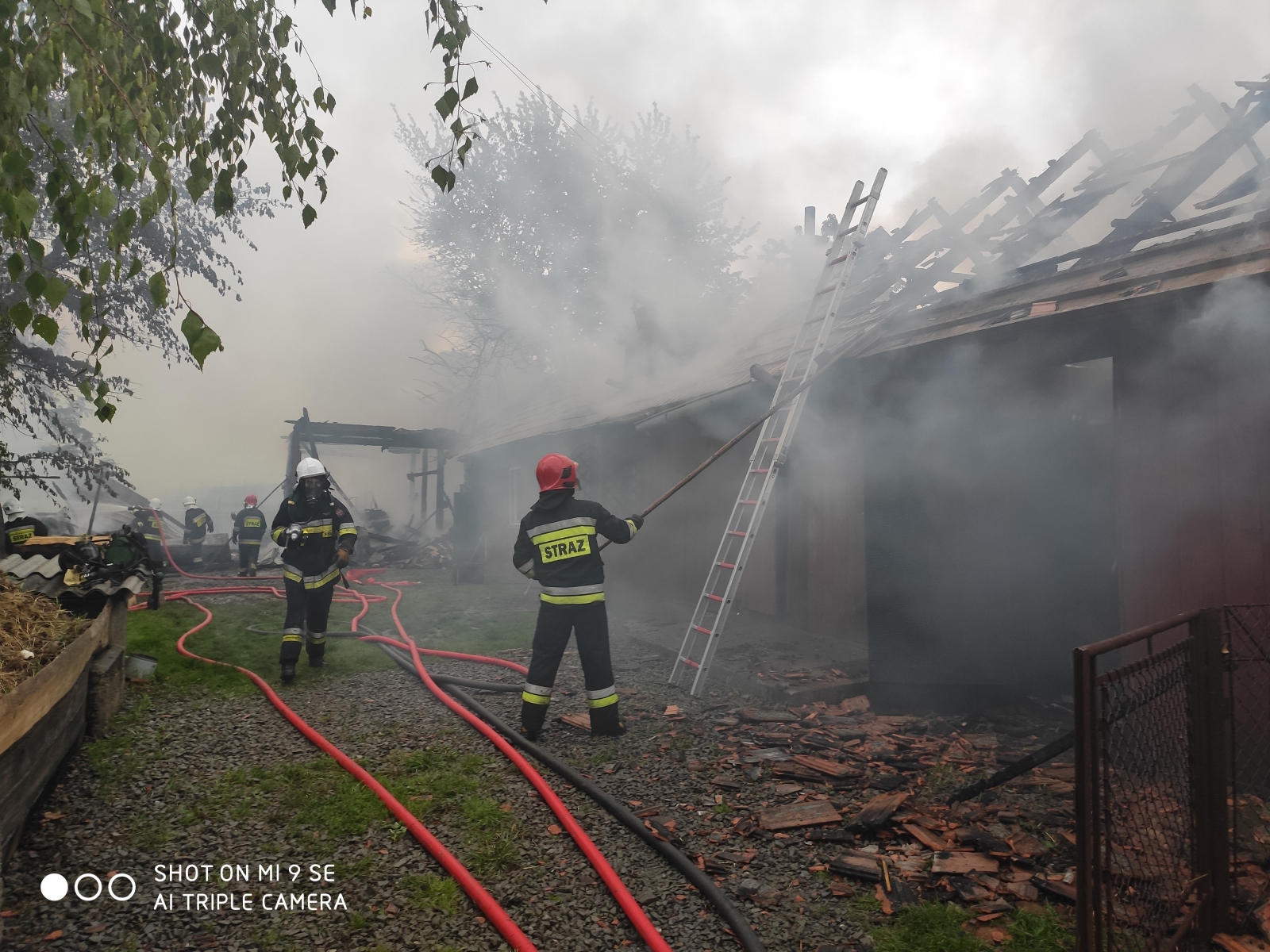 Pożar budynku mieszkalnego i gospodarczego w miejscowości Samoklęski