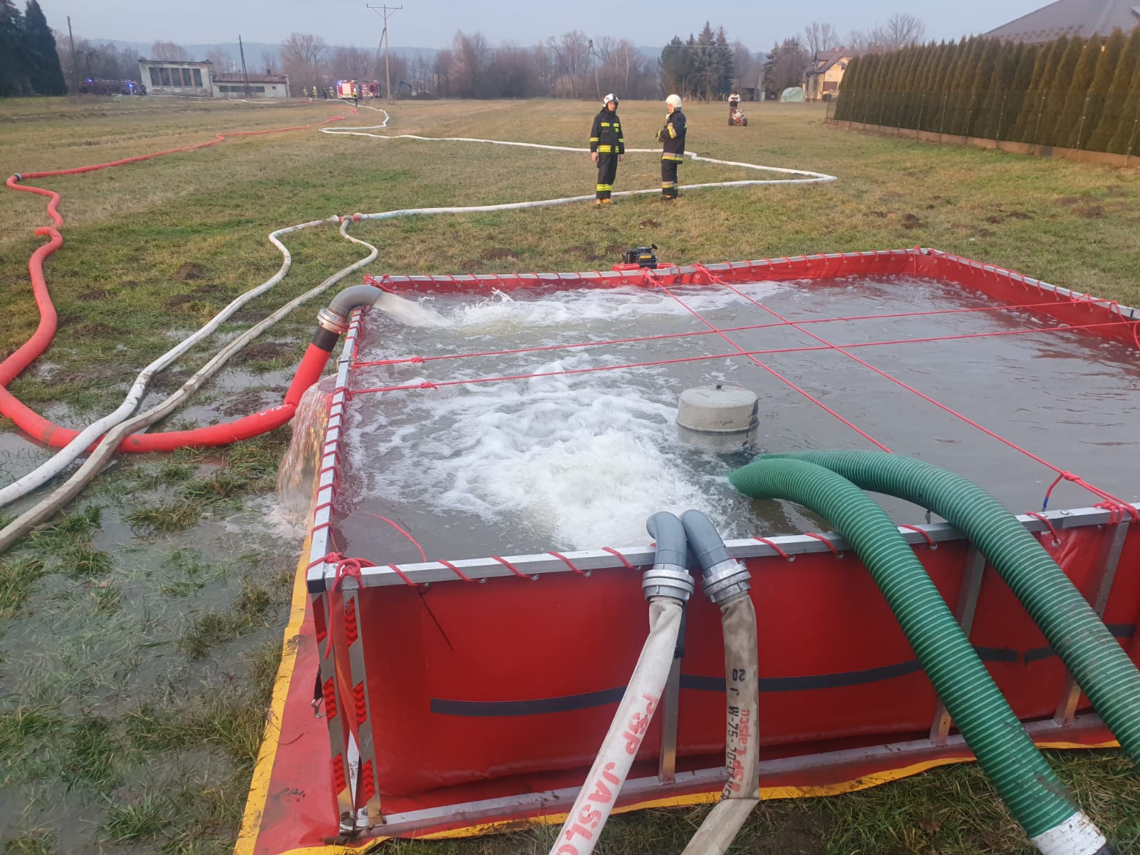 11 stycznia 2023 r. o godzinie 13:27 Stanowisko Kierowania Komendanta Powiatowego PSP w Jaśle otrzymało zgłoszenie o pożarze w hali produkcyjnej w miejscowości Roztoki. Pożarem objęty był dach obiektu i wyposażenie hali. W hali znajdował się zbiornik z olejem napędowym, farby, rozpuszczalniki, butle z gazami technicznymi i gazem propan butan oraz dwa samochody osobowe, w których znajdowały się butle LPG. W pierwszym etapie akcji prądy wody kierowano w miejsca, gdzie znajdowały się butle z gazami w celu ich schłodzenia. Dodatkowo podano prądy wody z dwóch działek przenośnych i trzy prądy z podnośników. Punkty czerpania wody zlokalizowane były na rzece Jasiołka skąd przepompowywano wodę do zbiornika o pojemności 10 m3.