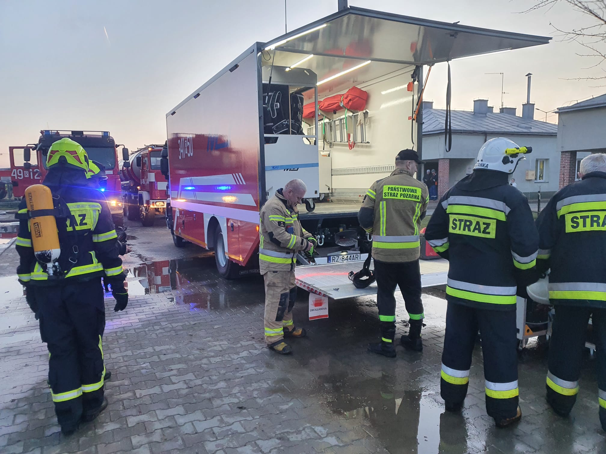 Działaniami ratowniczymi kierował bryg. Piotr Śmietana komendant powiatowy PSP w Jaśle. W działaniach ratowniczo-gaśniczych brało udział 27 zastępów straży pożarnej: JRG PSP Jasło, jednostki OSP z terenu powiatu jasielskiego, w tym 2 specjalistyczne podnośniki hydrauliczne. Na miejsce pożaru zadysponowano dodatkowo z JRG PSP Krosno drabinę mechaniczną 37 metrów i specjalistyczny samochód SPGaz w celu uzupełniania powietrza
