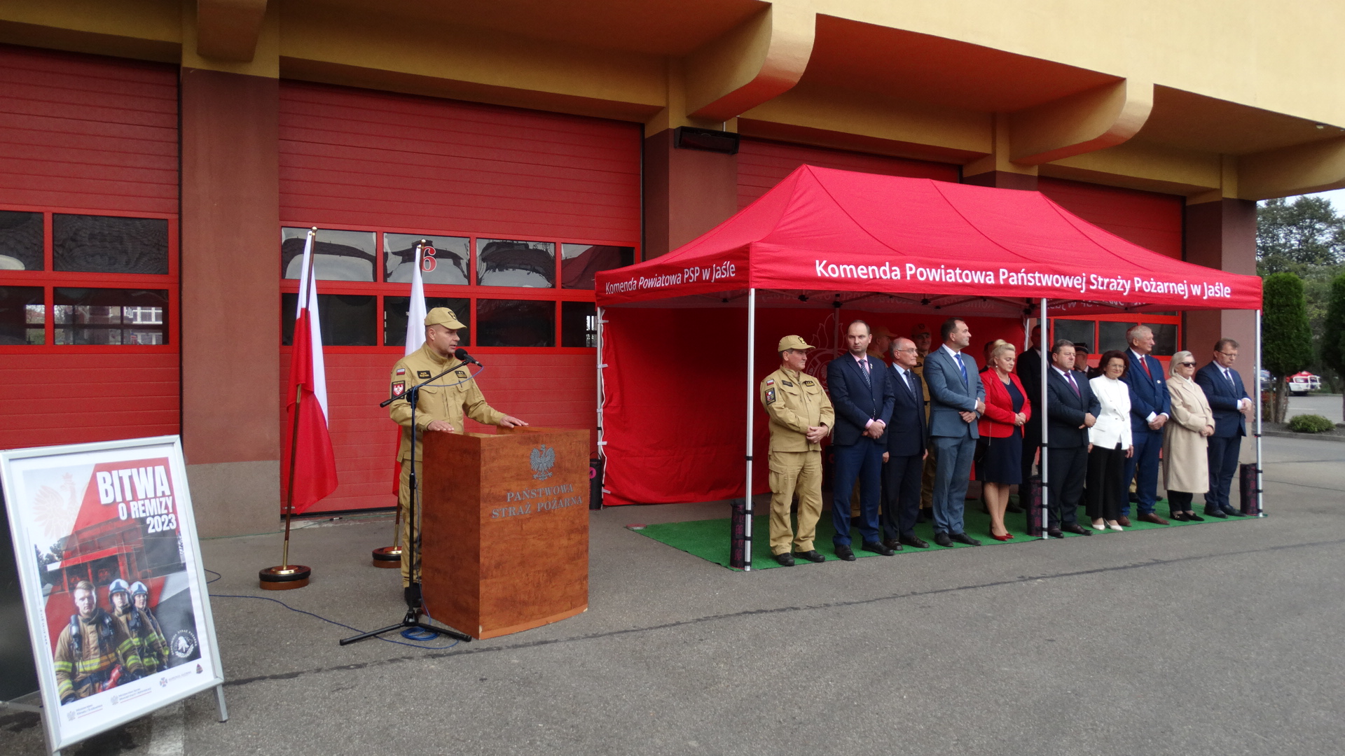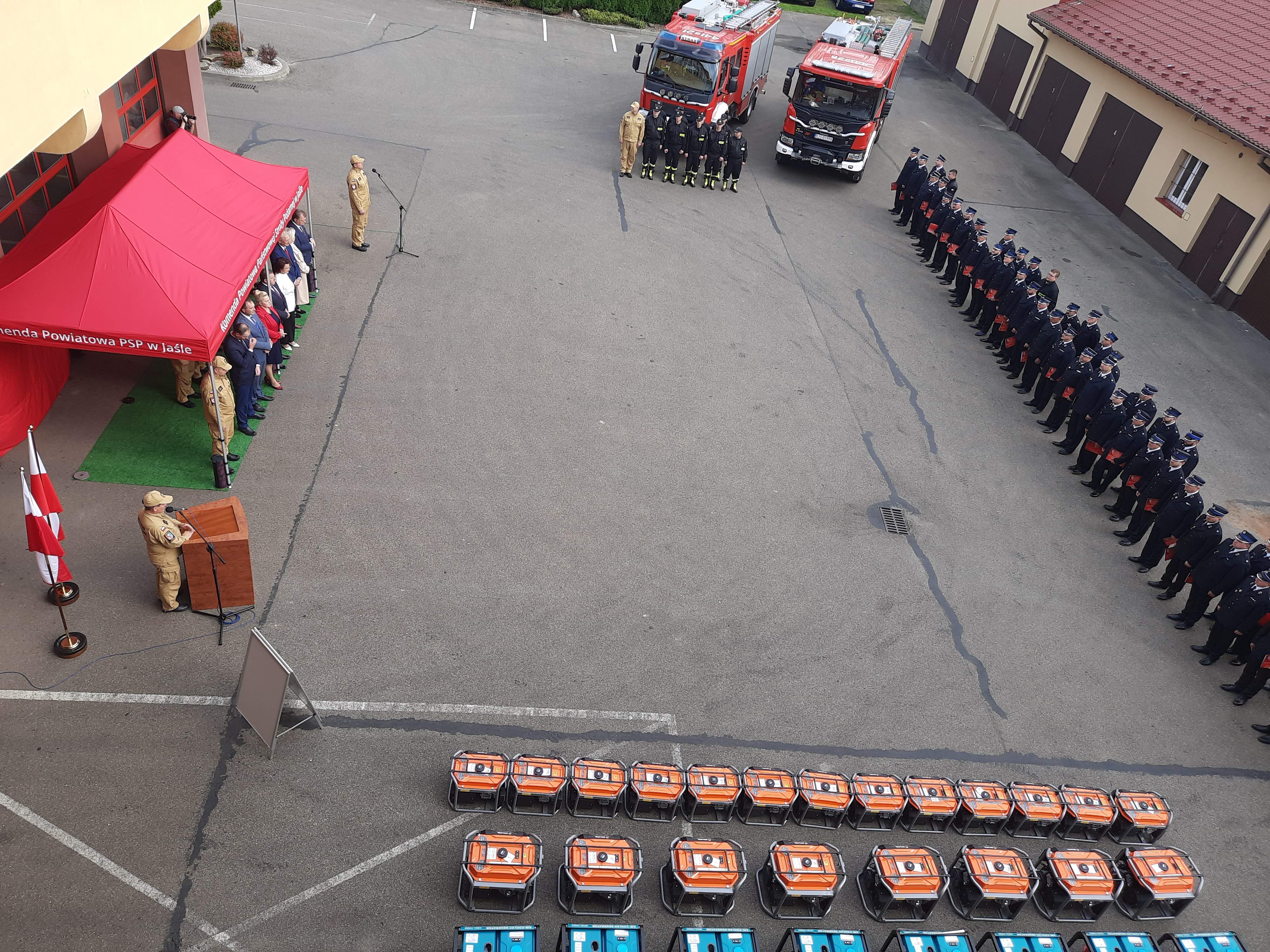 Agregaty prądotwórcze zakupiono z Rządowej Agencji Rezerw Strategicznych. Uroczystość rozpoczęła się od złożenia meldunku przez dowódcę uroczystości mł. kpt. Piotra Wojdyłę zastępcy podkarpackiego komendanta wojewódzkiego st. bryg. Andrzejowi Marczeni. Zaproszonych gości przywitał komendant powiatowy PSP w Jaśle bryg. Piotr Śmietana, który omówił także szczegóły trwającej akcji „Bitwa o remizy 2023”.