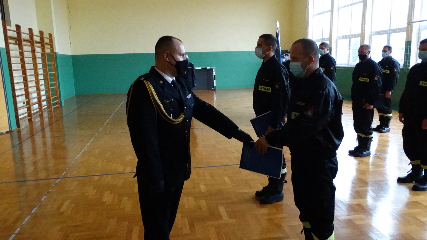 Wręczono nagrody pieniężne Podkarpackiego Komendanta Wojewódzkiego Państwowej Straży Pożarnej dla dwóch strażaków (sekc. Piotr Piekuś, st.str. Dariusz Piekuś), którzy uratowali życie mężczyzny podczas akcji ratowniczej w czasie powodzi w Jaśle.