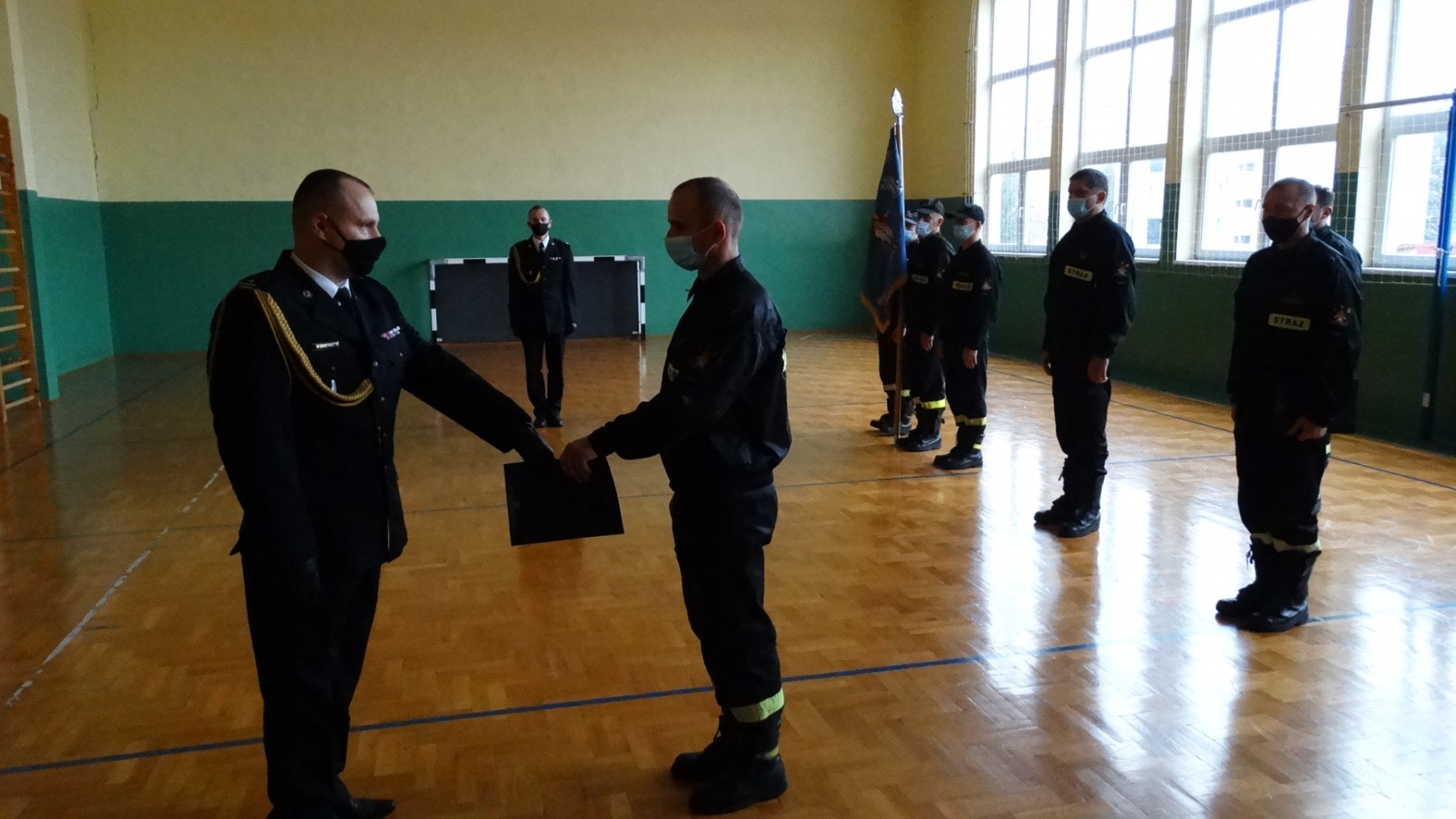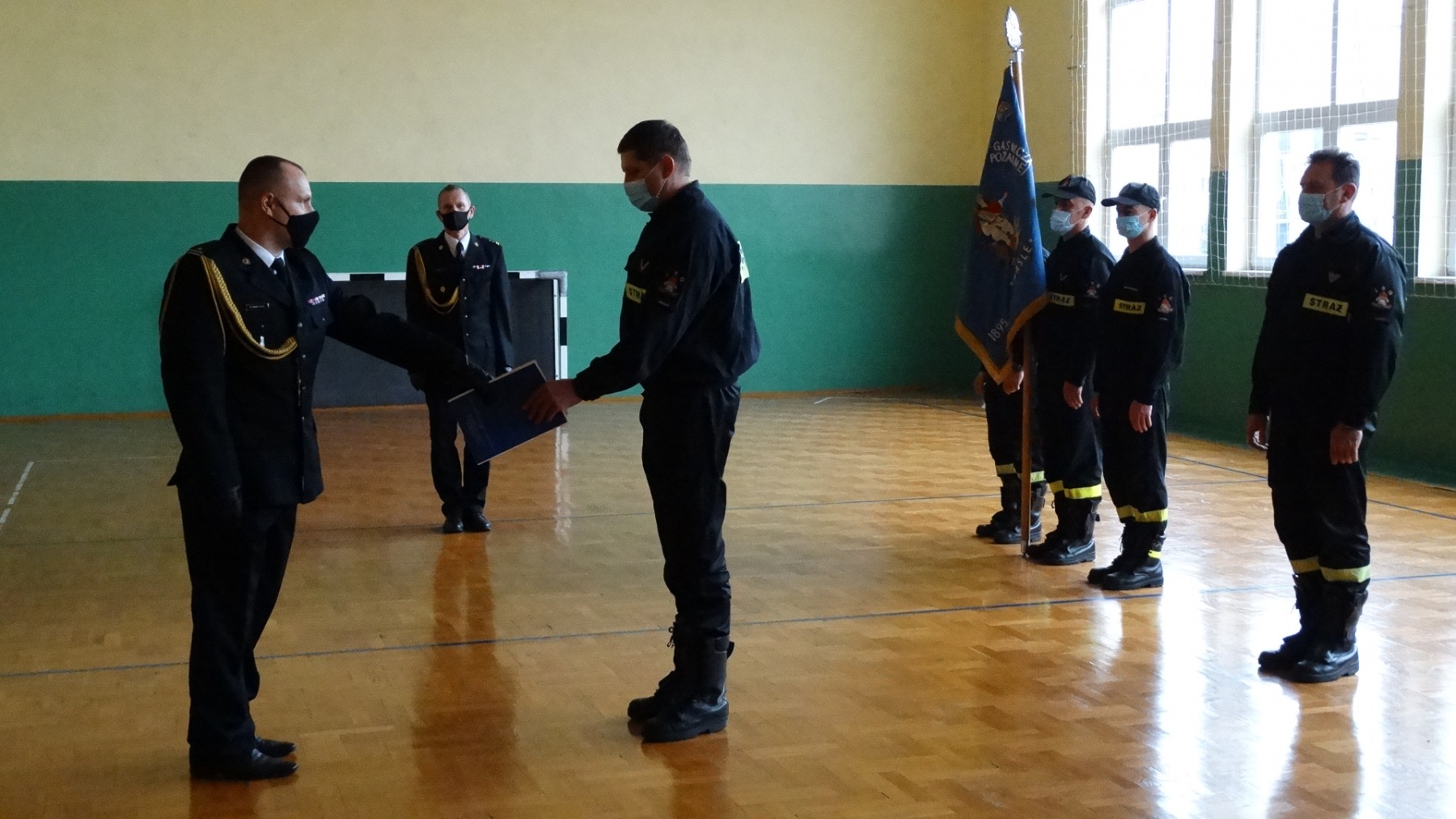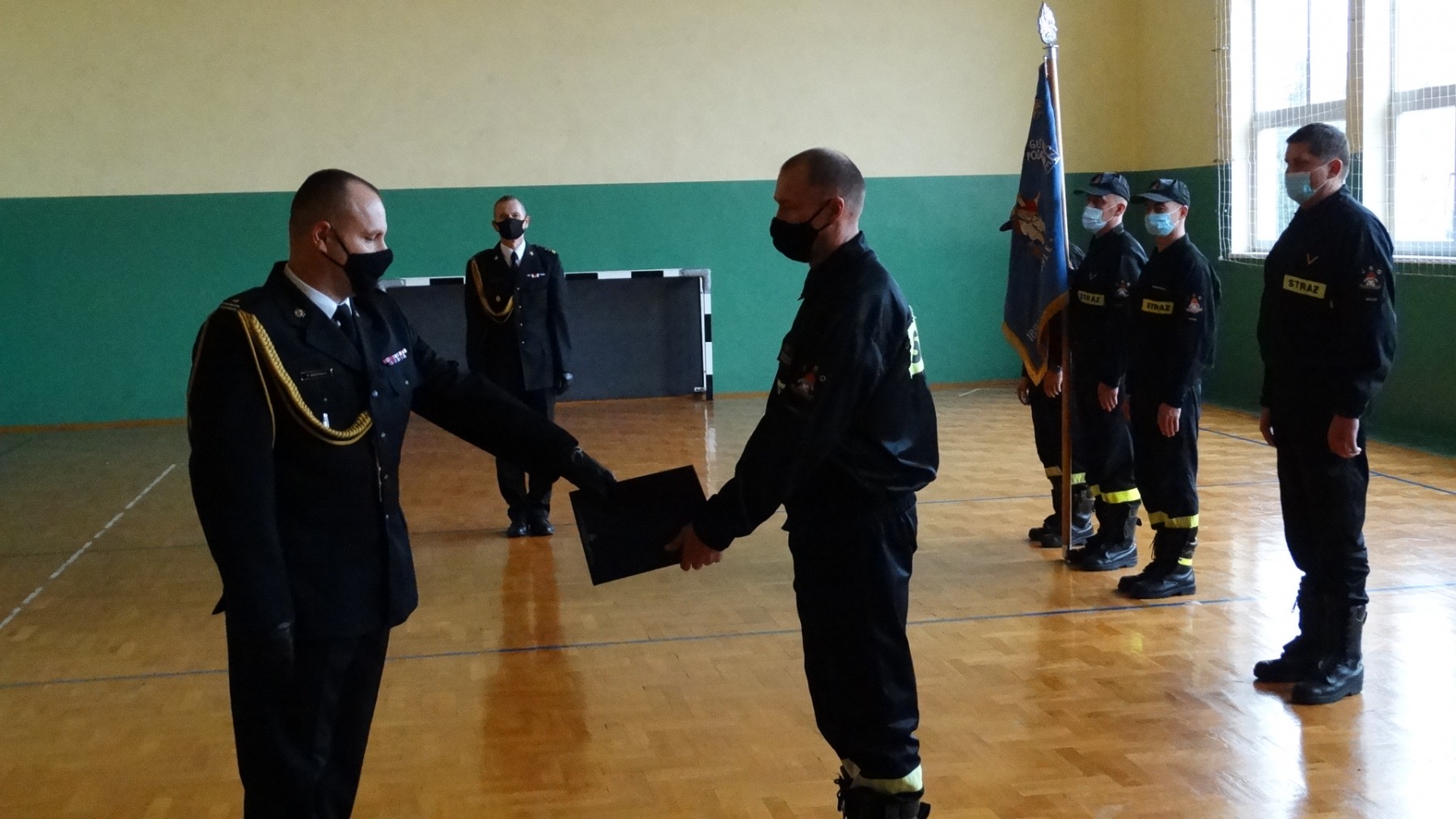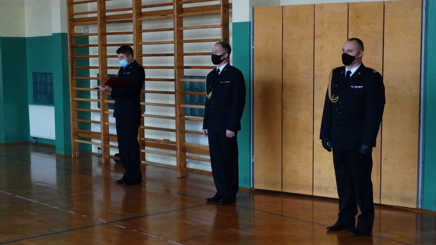 Odczytano wyciągi z rozkazów o nadaniu z dniem 11.11.2020r. wyższych stopni służbowych dla strażaków, którzy wyróżnili się dużym zaangażowaniem podczas akcji powodziowej na terenie powiatu jasielskiego. Awanse na wyższe stopnie służbowe otrzymali: