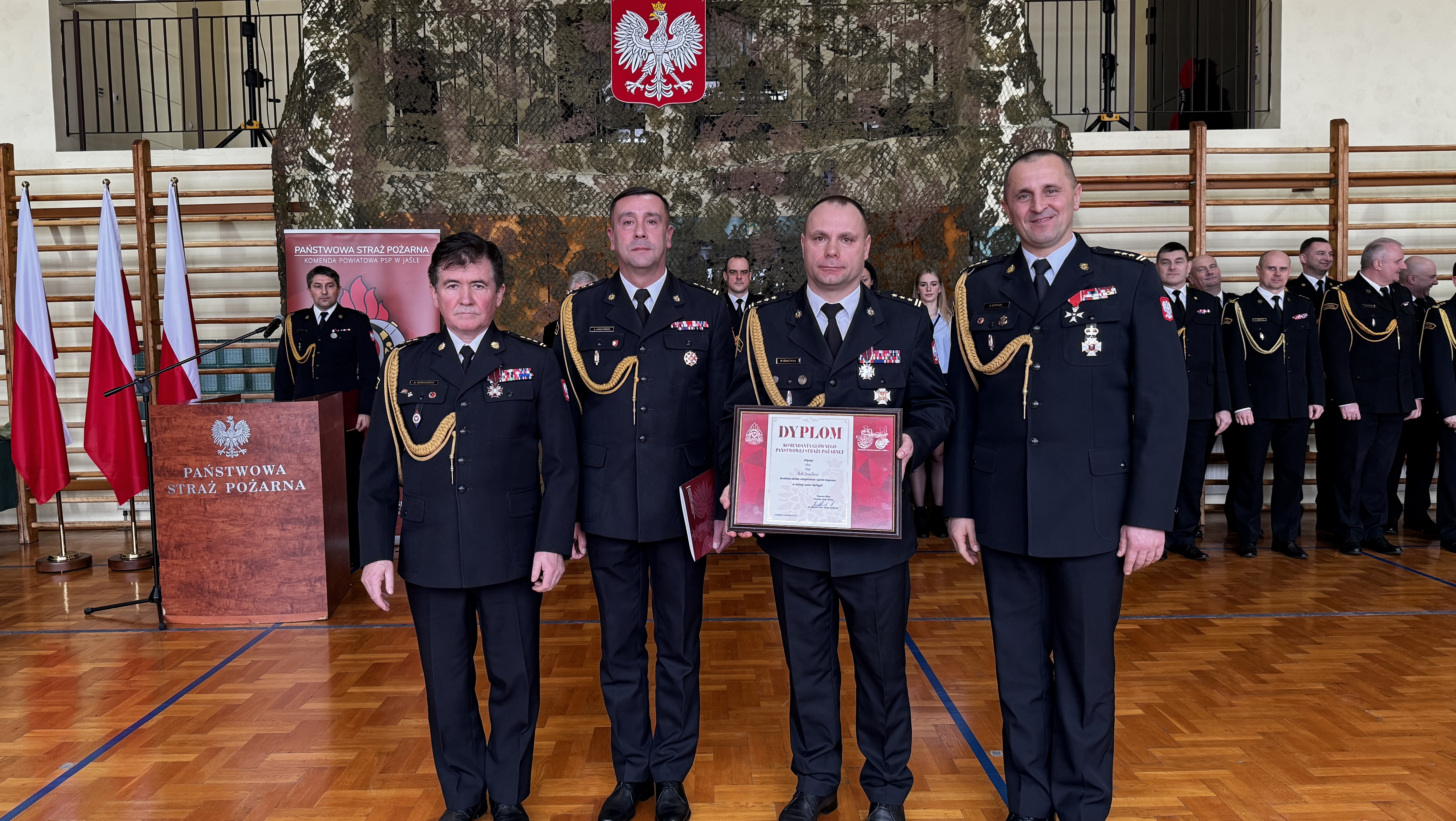 Podczas uroczystości zastępca podkarpackiego komendanta wojewódzkiego PSP wręczył ustępującemu komendantowi dyplom od komendanta głównego Państwowej Straży Pożarnej.