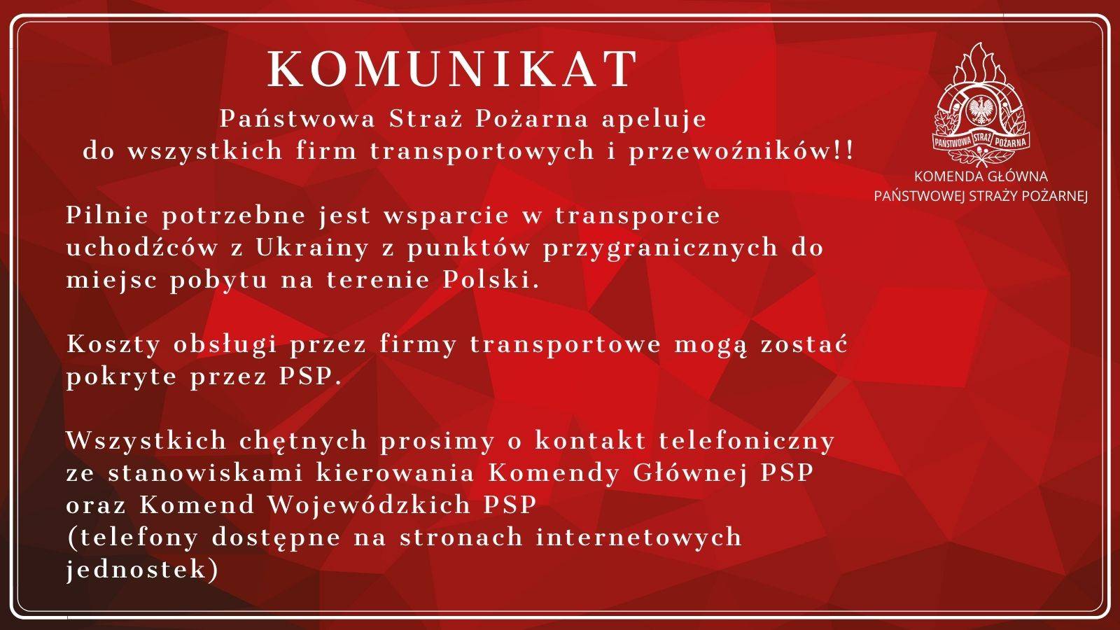 Państwowa Straż Pożarna apeluje do wszystkich firm transportowych i przewoźników !!