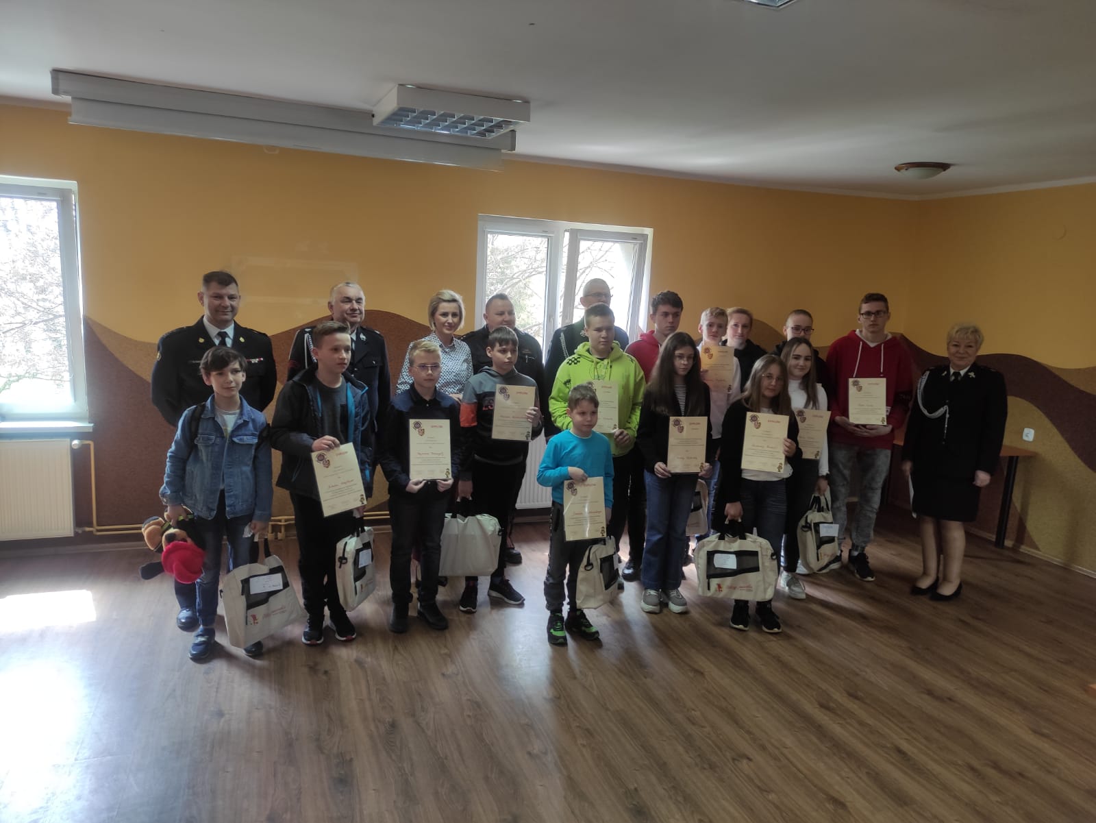 Wszyscy uczestnicy po zakończonym konkursie zostali obdarowani nagrodami ufundowanymi m.in. przez władze powiatu jaworskiego, Zarządy Oddziału Wojewódzkiego i Powiatowego ZOSP RP. Nagrody wspólnie ze Starostą Jaworskim Anetą Kucharzyk wręczyli Komendant Powiatowy PSP w Jaworze bryg. Waldemar Sarlej, Prezes Zarządu Oddziału Powiatowego ZOSP RP w Jaworze dh Jan Grygorcewicz oraz członek Prezydium Zarządu Oddziału Powiatowego ZOSP RP w Jaworze dh Andrzej Kołek.