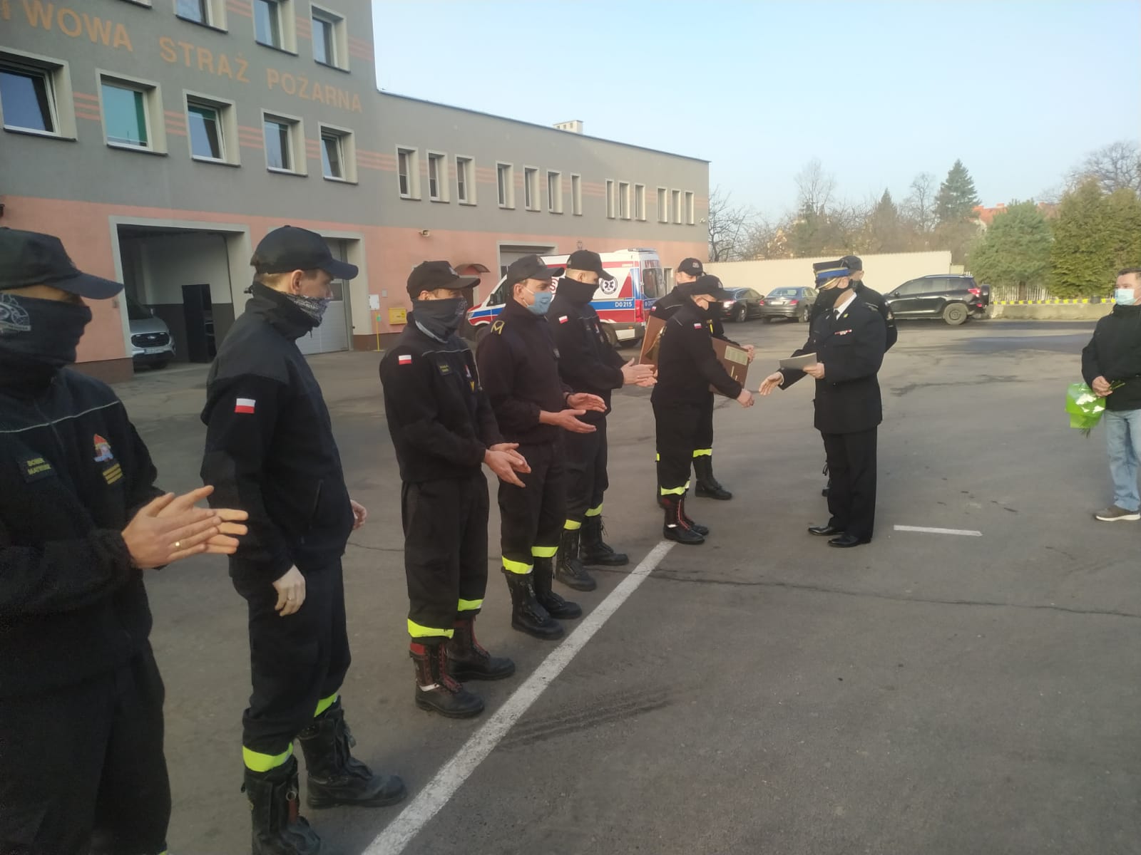 Pawłowi za długoletnią służbę podziękowali pracownicy komendy na czele z Komendantem Powiatowym PSP w Jaworze bryg. Waldemarem Sarlejem i Zastępcą Komendanta Powiatowego bryg. Arkadiuszem Delikatnym.