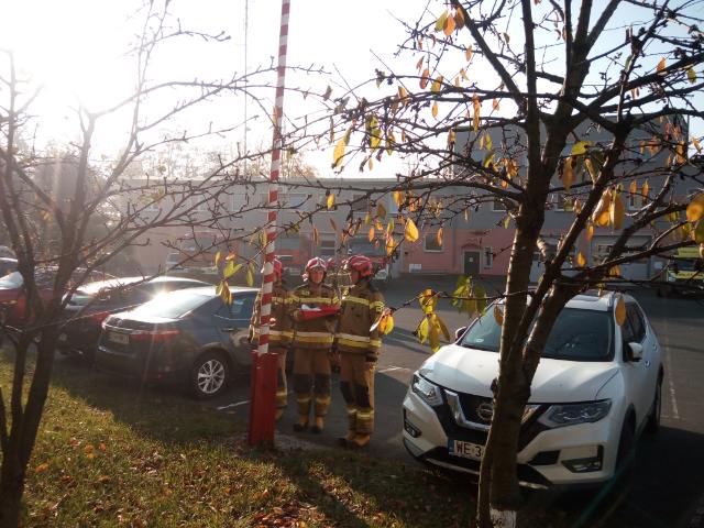 Z okazji obchdodów Narodowego Święta Niepodległości w Komendzie Powaitowej Państwowej Straży Pożarnej w Jaworze dokonano uroczystęgo wciągnięcia flagi państwowej na maszt oraz odśpiewania Mazurka Dąbrowskiego.