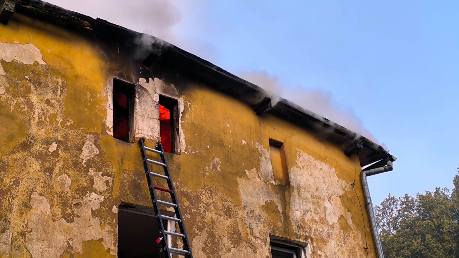 Nocny pożar w Siedmicy, ewakuacja mieszkańca przez okno w budynku