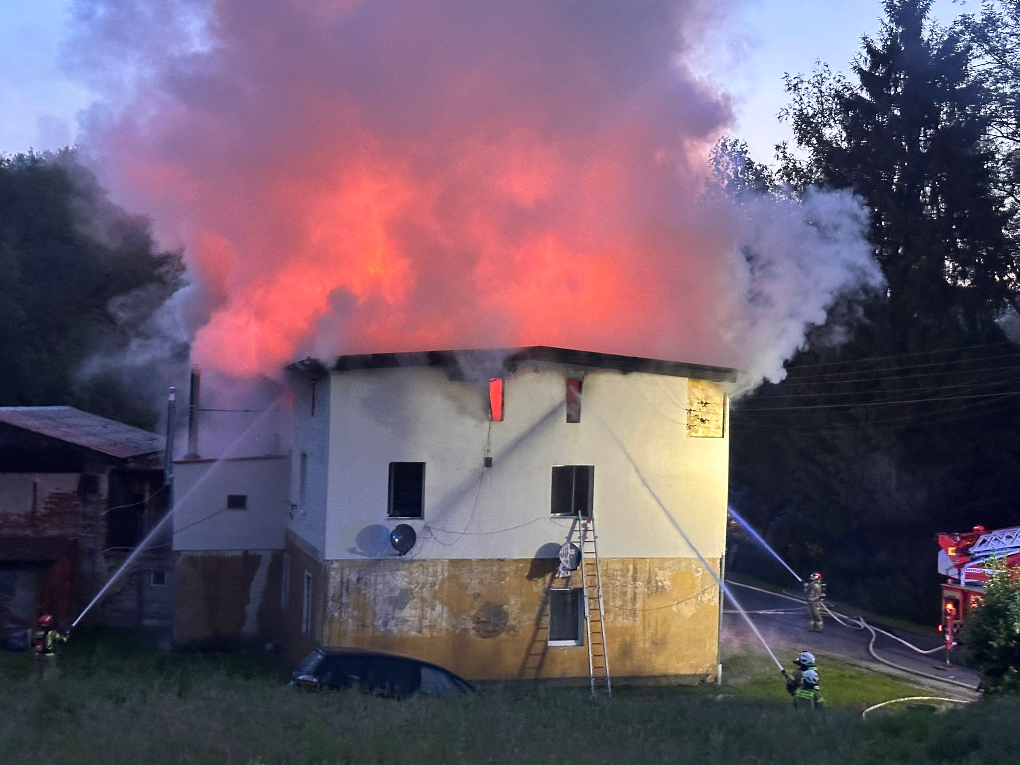 Po przybyciu pierwszych zastępów na miejsce zdarzenia, pożar był już w pełni rozwinięty, a ogień wydostawał się z dachu i okien poddasza.