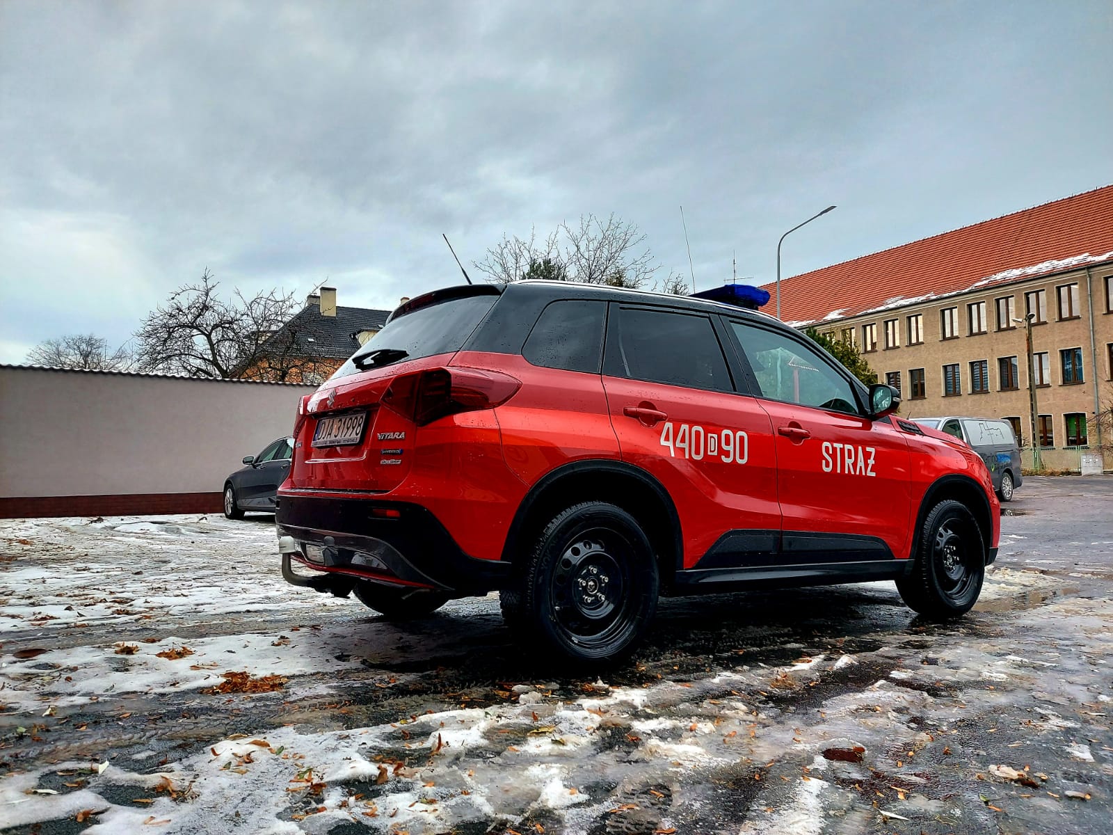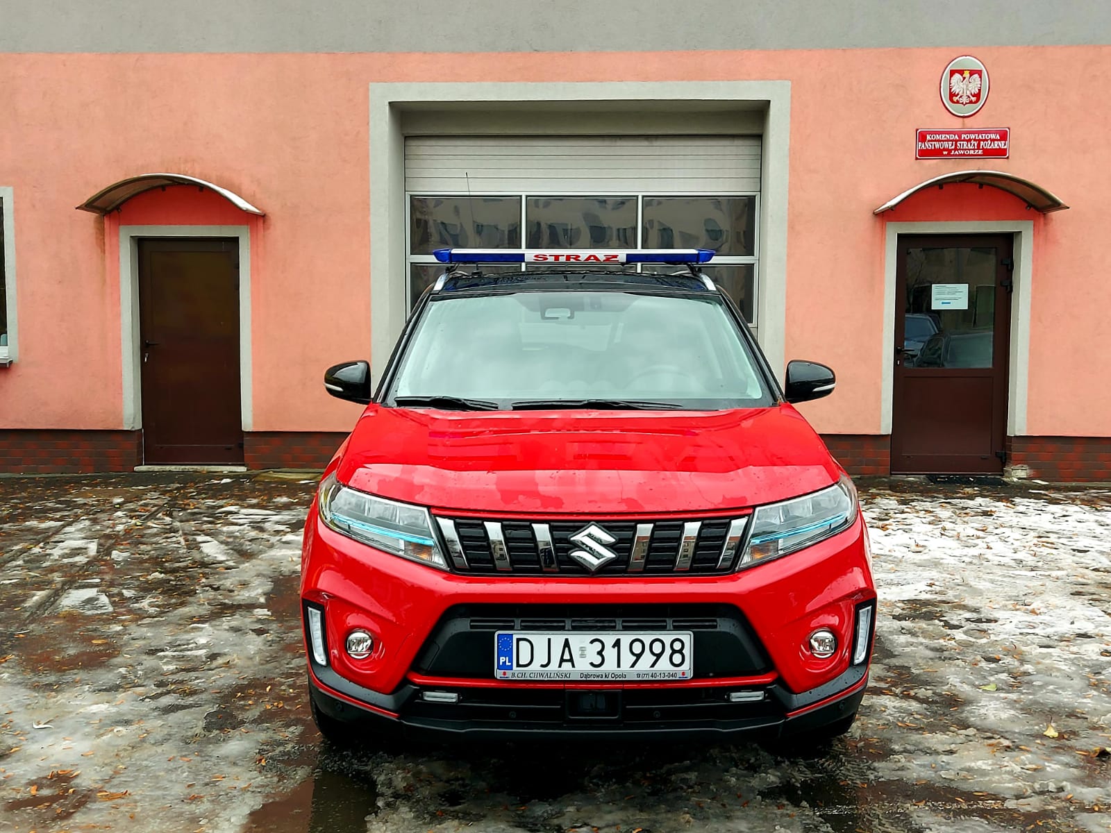 Z końcem roku do jaworskiej komendy trafił nowy lekki samochód operacyjny z napędem 4x4. Pojazd marki Suzuki Vitara na co dzień wykorzystywany będzie przez funkcjonariuszy z Wydziału Operacyjno – Kontrolo – Rozpoznawczego. Choć liczymy, że do takich sytuacji dochodzić będzie jak najrzadziej to pojazd będzie również środkiem transportu osób funkcyjnych z KP PSP Jawor dojeżdżających na miejsca strażackich interwencji, których zadaniem jest m.in. przejmowanie kierowania działaniami ratowniczymi podczas pożarów, miejscowych zagrożeń i innych nietypowych zdarzeń. Napęd na 4 koła poprawia jego właściwości terenowe. Pojazd wyposażony jest w hak holowniczy dzięki czemu będzie mógł zostać wykorzystany do transportu łodzi ratowniczej czy też namiotu dekontaminacyjnego. Pozyskany pojazd jest hybrydą i wpisuje się w obecne trendy ekologiczne.
