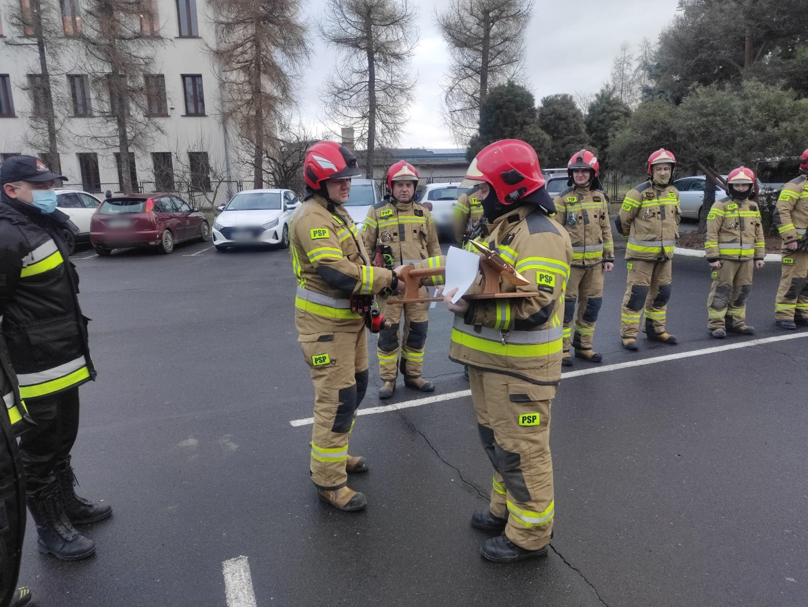 Zmiana służby miała dla Grześka niecodzienny charakter, ponieważ towarzyszyli mu w niej koledzy z jaworskiej komendy na czele z Komendantem Powiatowym PSP w Jaworze bryg. Waldemarem Sarlejem.