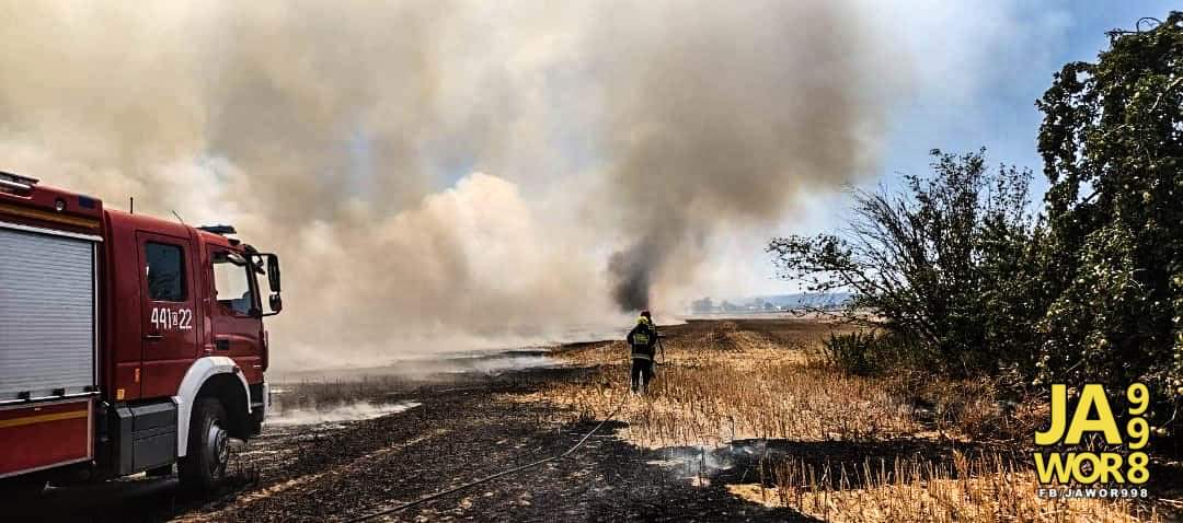 Do ogromnej kumulacji pożarów ściernisk i zboża na pniu doszło w poniedziałek 25 lipca. Po godz. 13 do stanowiska kierowania jaworskiej komendy zaczęła napływać nawałnica zgłoszeń od mieszkańców powiatu o widocznych kłębach dymu unoszących się na polami w okolicach miejscowości Zębowice, Niedaszów, Paszowice i Sokola.