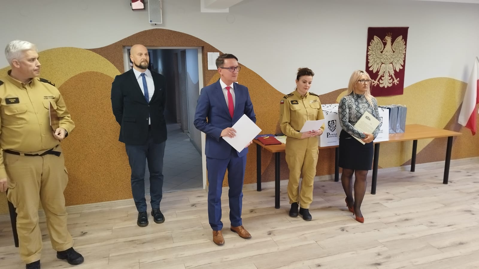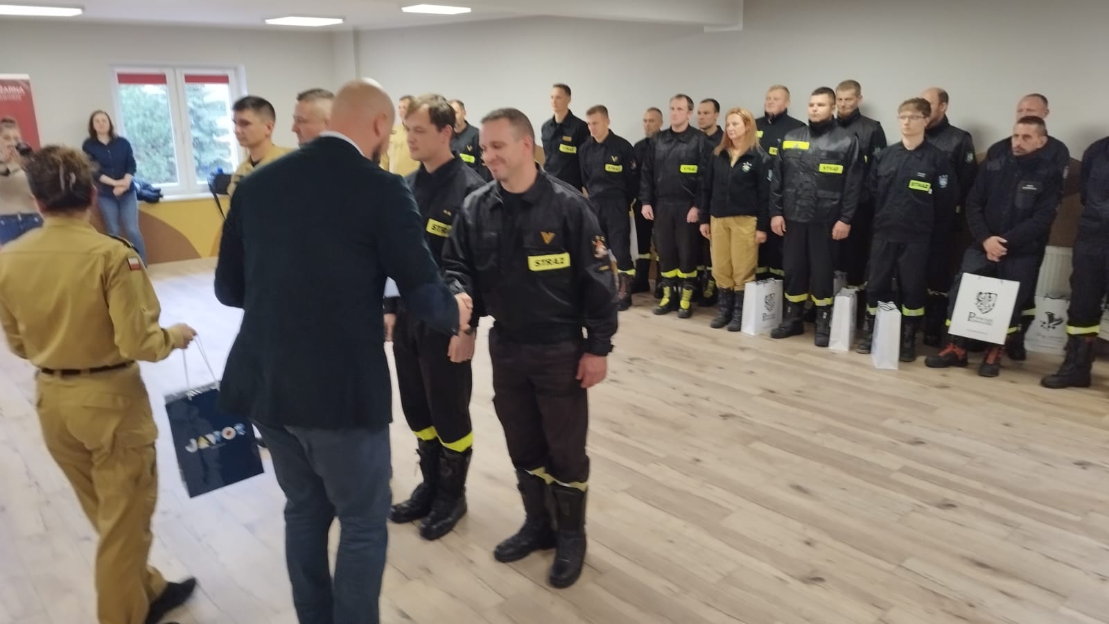 Komendanta Powiatowy PSP w Jaworze mł. bryg. Tomasz Kita wspólnie ze Starostą Jaworskim Michałem Bander złożyli podziękowania i wręczyli upominki dla strażaków z JRG Jawor oraz strażaków z jednostek OSP z Mściwojowa, Paszowic, Jawora, Sadów Dolnych i Kaczorowa za podjęcie działań humanitarnych w Kotlinie Kłodzkiej. Strażakom przekazano również podziękowania Wójta Gminy Kłodzko.