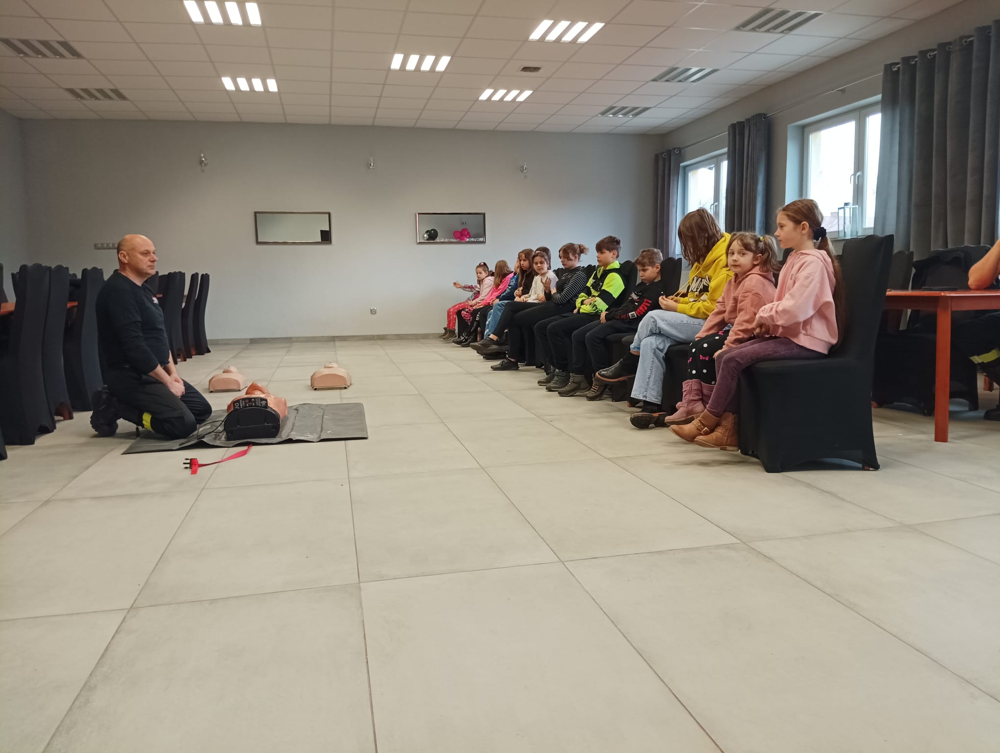 W dniu 17 lutego mł. kpt. Mirosław Walaszczyk – powiatowy koordynator ratownictwa medycznego udzielił instruktażu ratownictwa medycznego z wykorzystaniem fantoma dla dzieci z Mierczyc.