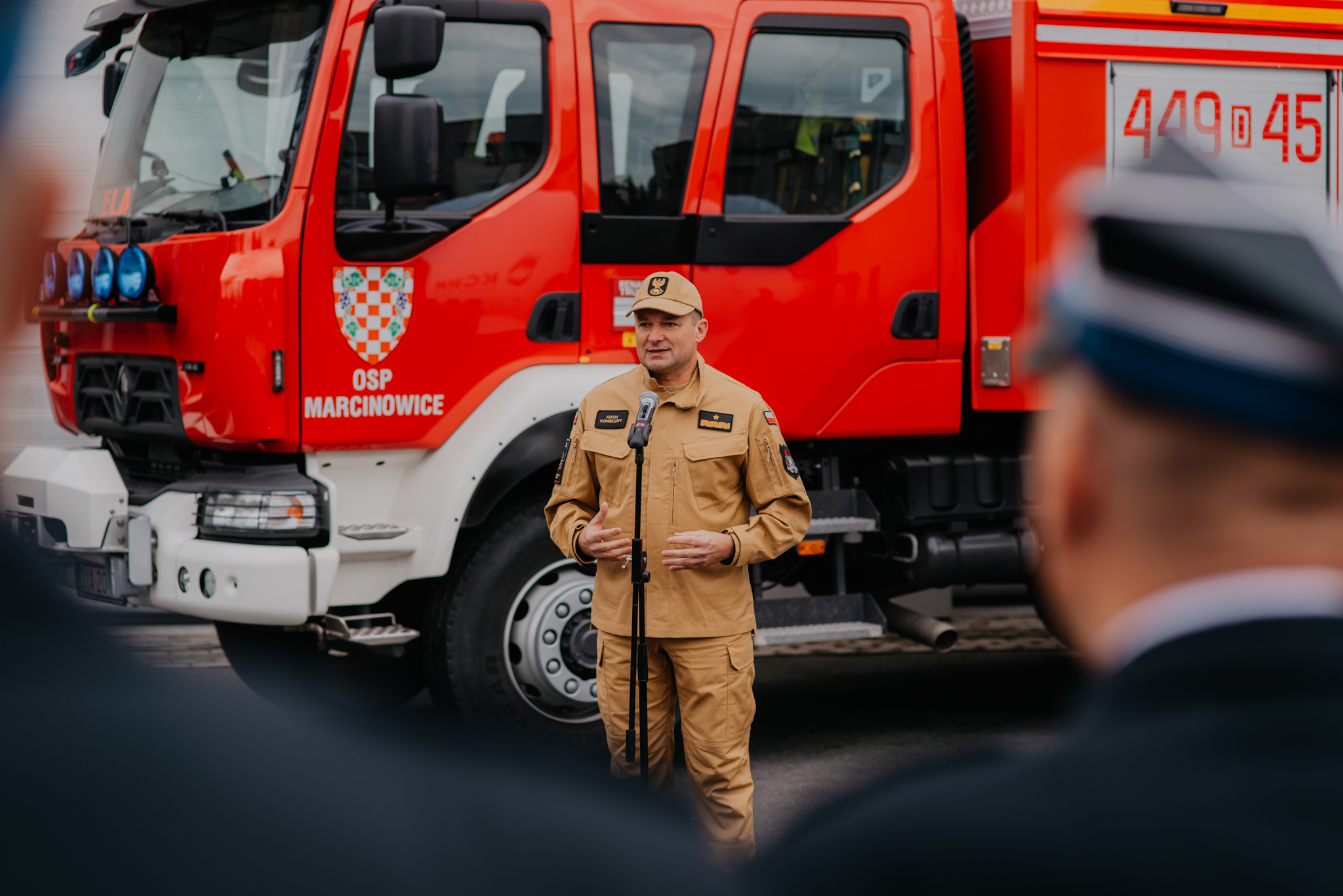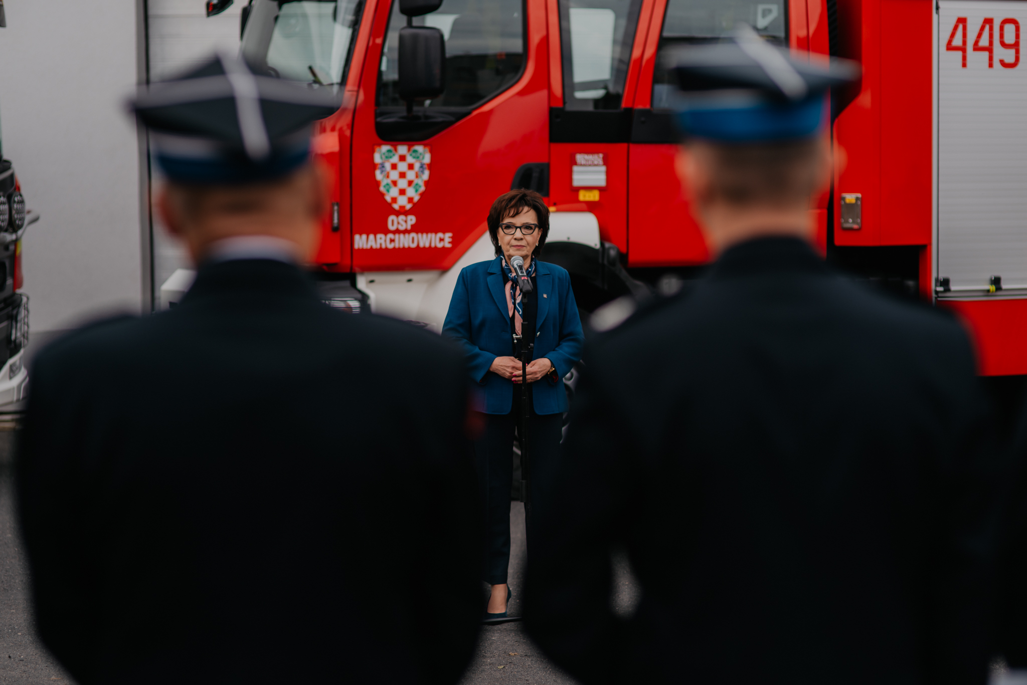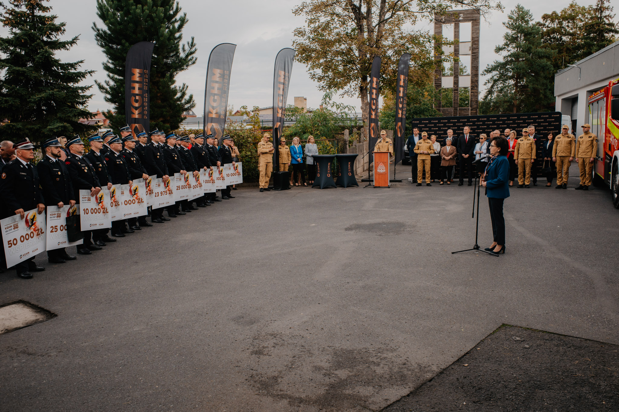 W uroczystości wręczenia symbolicznych czeków na zakup sprzętu wzięli udział: Marszałek Sejmu Rzeczypospolitej Polska Pani Elżbieta Witek, Poseł na Sejm Pani Ewa Szymańska, Senator RP Pan Krzysztof Mróz, Prezes KGHM Polska Miedź S. A. Pan Tomasz Zdzikot, Przewodnicząca Rady Nadzorczej KGHM Polska Miedź S. A. Pani Agnieszka Winnik – Kalemba, Prezes Fundacji KGHM Polska Miedź S. A. Pani Helena Krupska, Zastępca Komendanta Głównego Państwowej Straży Pożarnej nadbryg. Adam Konieczny, Dolnośląski Komendant Wojewódzki Państwowej Straży Pożarnej st. bryg. Marek Kamiński, Starosta Powiatu Jaworskiego Pani Aneta Kucharzyk, Dyrektor Biura Poselskiego Elżbiety Witek Pani Aneta Trela oraz Komendant Powiatowy Państwowej Straży Pożarnej w Jaworze kpt. Mirosław Walaszczyk wraz ze swoim Zastępcą mł. kpt. Łukaszem Fuławka.