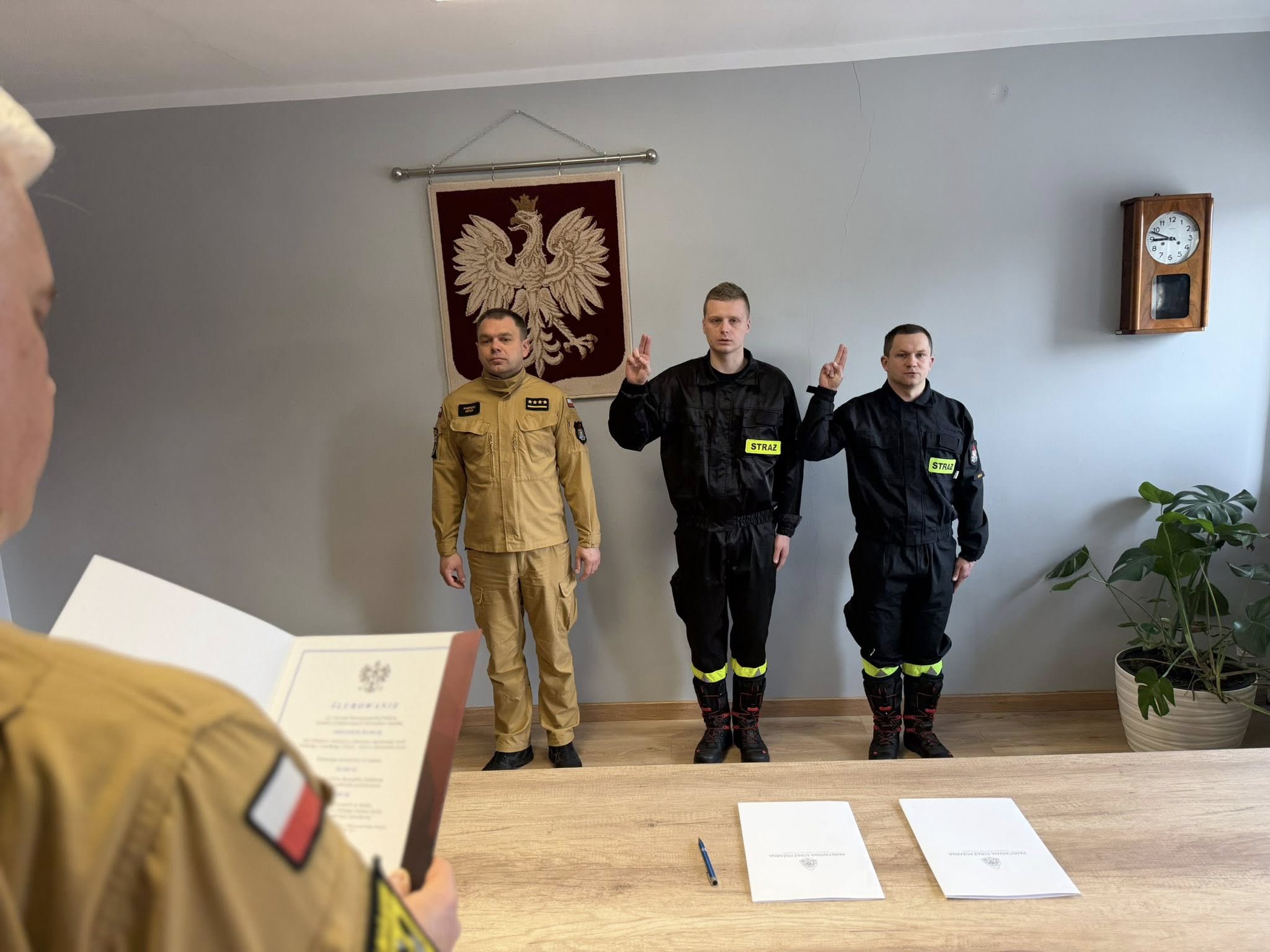 Nowo przyjętym strażakom życzymy wytrwałości w szkoleniu, odpowiedzialności w realizacji powierzonych obowiązków oraz bezpiecznej służby.