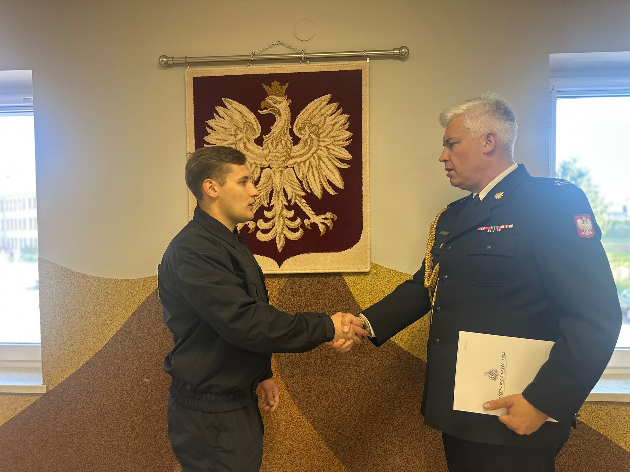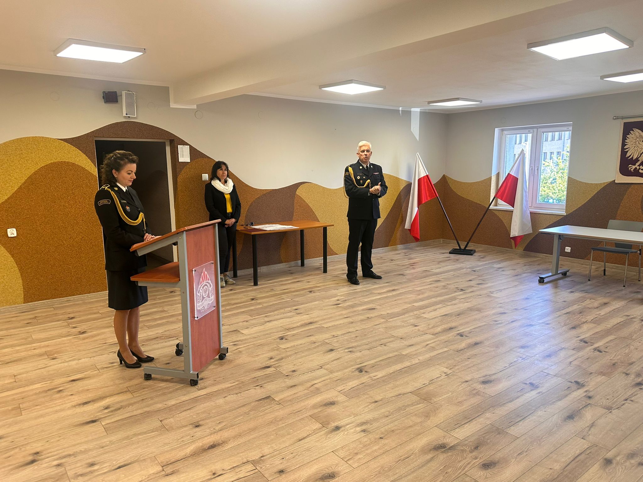 Komendant życzył nowym funkcjonariuszom, by byli strażakami z krwi i kości gotowymi do działania w każdym momencie swojego życia, przypominając również, że przed nimi czas intensywnej nauki, pracy i szkolenia w Centralnej Szkole Aspirantów PSP w Częstochowie, po którym czekać będą na nich codzienne wyzwania w służbie na rzecz lokalnej społeczności.
