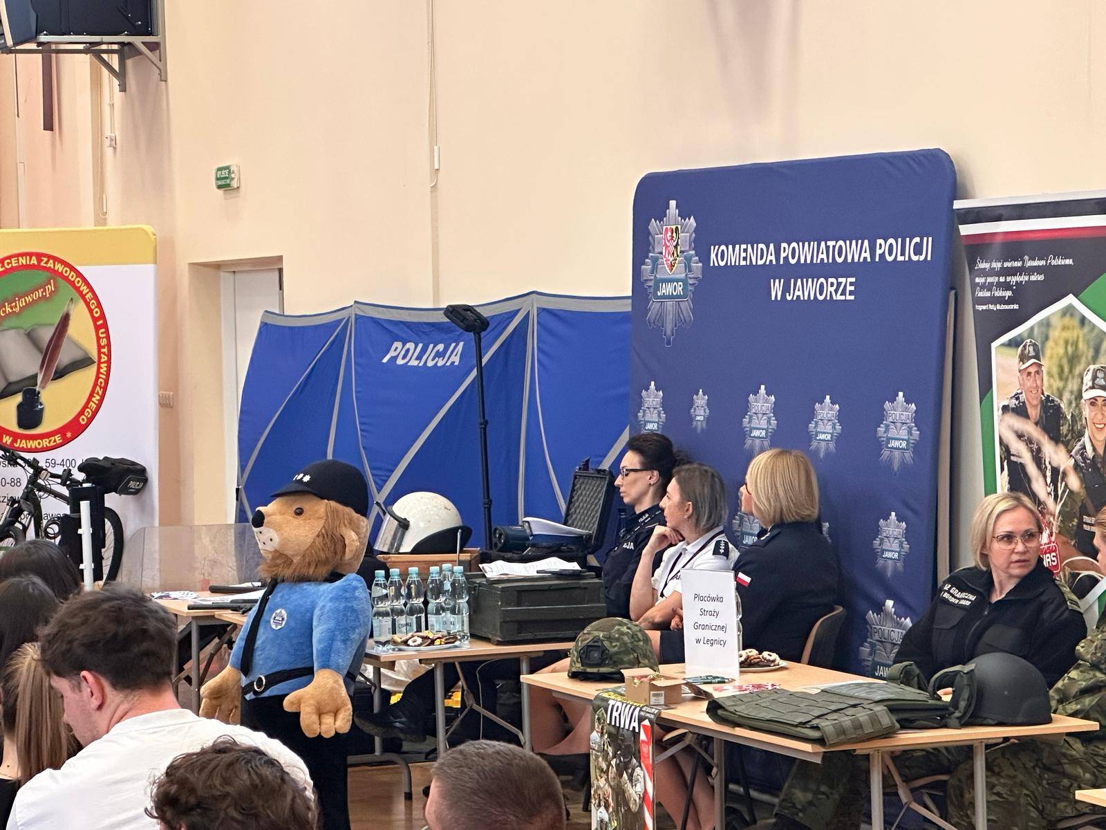 Wśród wystawców obecni byli również przedstawiciele Komendy Powiatowej PSP w Jaworze, którzy z zaangażowaniem odpowiadali na pytania młodzieży dotyczące rekrutacji do Państwowej Straży Pożarnej. Uczniowie interesowali się wymaganiami, przebiegiem naboru, możliwościami rozwoju oraz ścieżką awansu w strukturach PSP.