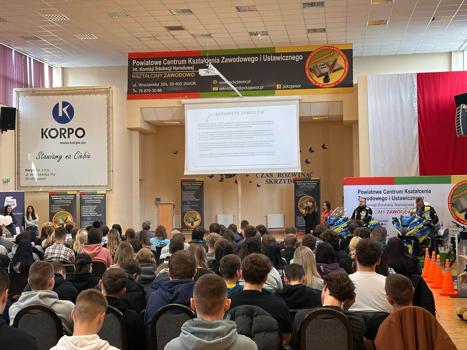 W dniu 02.04.2025 w auli PCKZiU w Jaworze odbyły się Targi Pracy „Krok w Przyszłość” zorganizowane przez Centrum Edukacji i Pracy Młodzieży OHP w Legnicy. Wydarzenie miało na celu wsparcie młodych ludzi w podejmowaniu świadomych decyzji dotyczących ich ścieżki zawodowej oraz przybliżenie realiów rynku pracy.