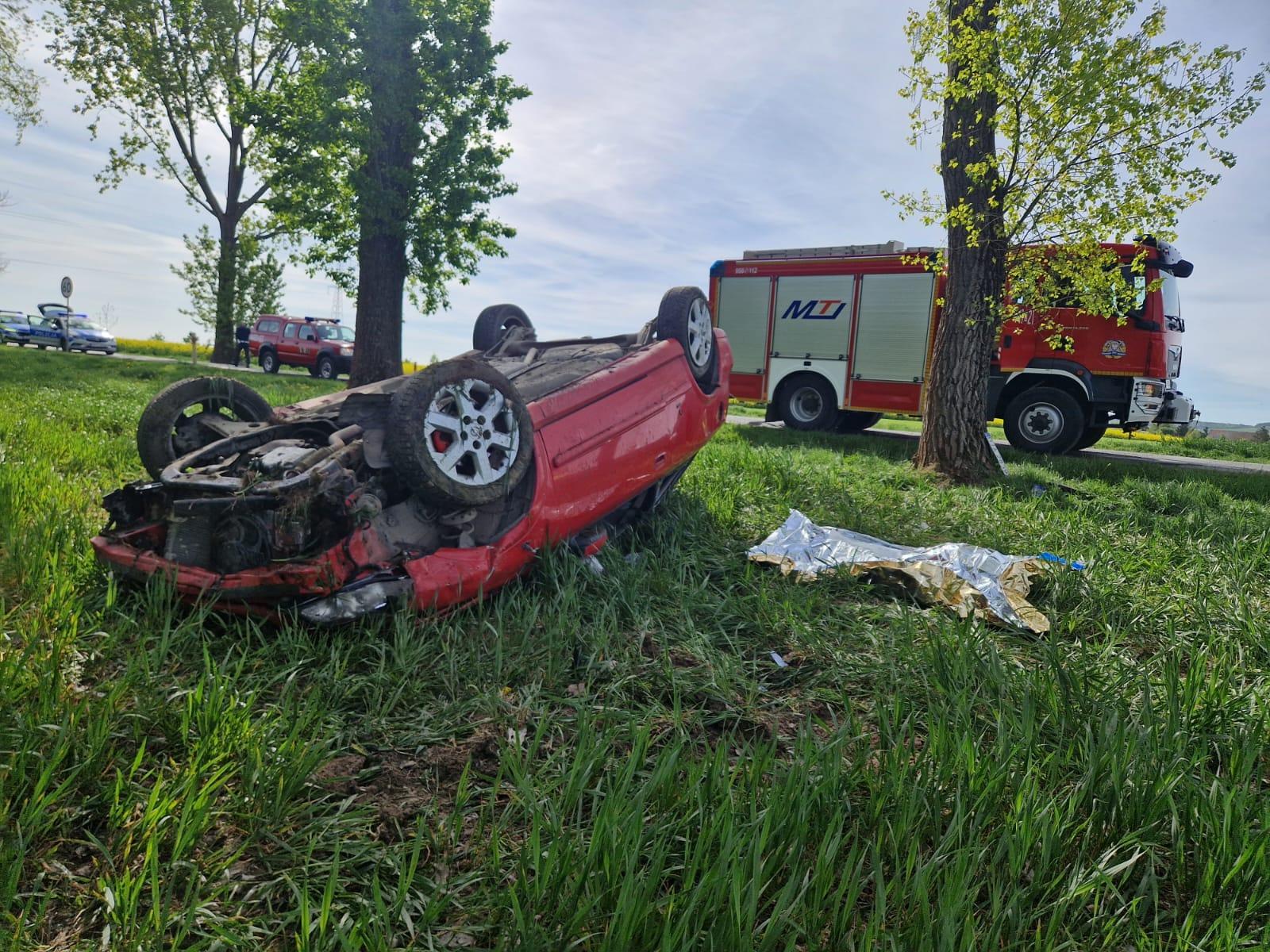 W dniu 12 kwietnia przed godz. 10 na drodze wojewódzkiej nr 382 na wysokości Męcinki doszło do dachowania pojazdu osobowego. Kierowca znajdował się przewróconym w pojeździe.