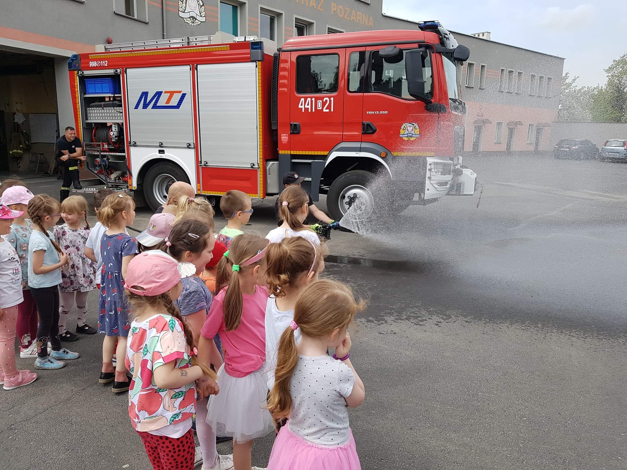 Największą atrakcją dla Przedszkolaków było jak zwykle lanie wody ze strażackich węży.