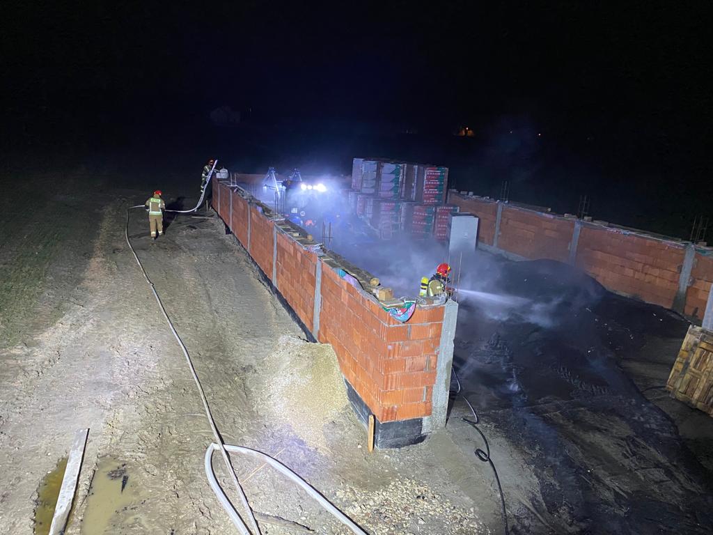 Po przybyciu na miejsce zastępów straży stwierdzono pożar nawozu organicznego składowanego na prywatnej posesji w ilości 50 ton. Działania straży polegały na zabezpieczeniu i oświetleniu miejsca zdarzenia oraz podaniu 3 prądów wody w natarciu na palący się nawóz. Po zlokalizowaniu pożaru przystąpiono do wywożenia tlącego się materiału przy użyciu ciągnika rolniczego, gdzie dodatkowo przelewano go wodą. Po dogaszeniu całe pogorzelisko sprawdzono kamerą termowizyjną nie stwierdzając dodatkowego zagrożenia.