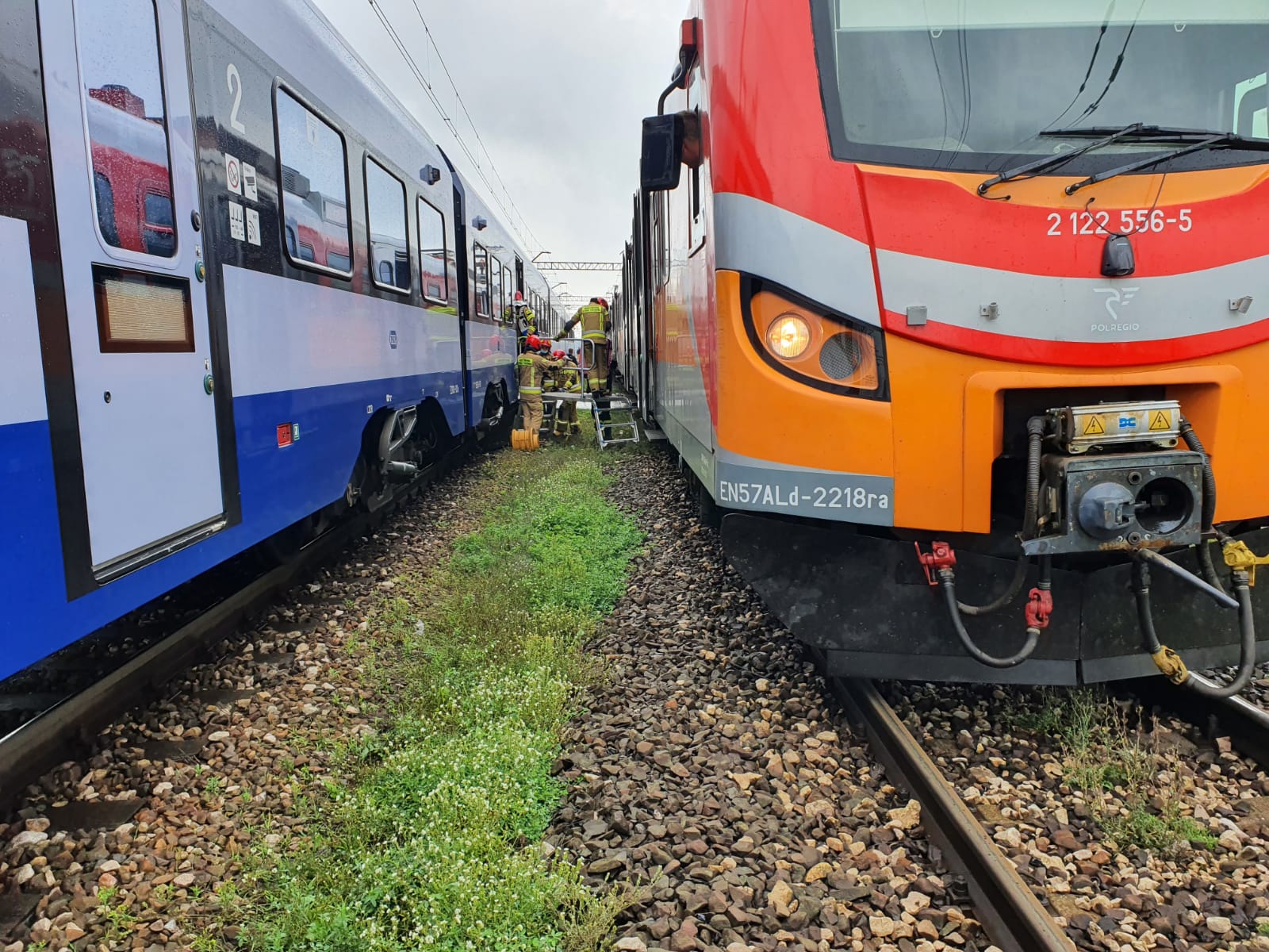 Działania jednostek ochrony przeciwpożarowej polegały na zabezpieczeniu miejsca zdarzenia i pomocy pasażerom w przesiadce do sprawnego pociągu, który został podstawiony przez przewoźnika na sąsiedni tor. Z uwagi na znaczną wysokość od stopnia pociągu do nasypu kolejowego strażacy sprawili podest ratowniczy, po którym wszyscy pasażerowie w asekuracji ratowników bezpiecznie przeszli do zastępczego pociągu. Trudna i nietypowa akcja została zakończona sukcesem.