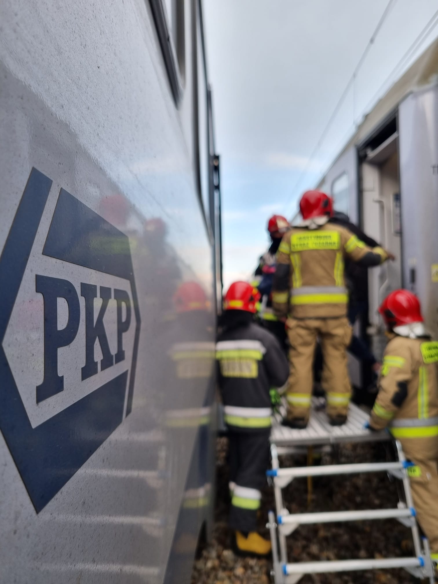 Działania jednostek ochrony przeciwpożarowej polegały na zabezpieczeniu miejsca zdarzenia i pomocy pasażerom w przesiadce do sprawnego pociągu, który został podstawiony przez przewoźnika na sąsiedni tor. Z uwagi na znaczną wysokość od stopnia pociągu do nasypu kolejowego strażacy sprawili podest ratowniczy, po którym wszyscy pasażerowie w asekuracji ratowników bezpiecznie przeszli do zastępczego pociągu. Trudna i nietypowa akcja została zakończona sukcesem.