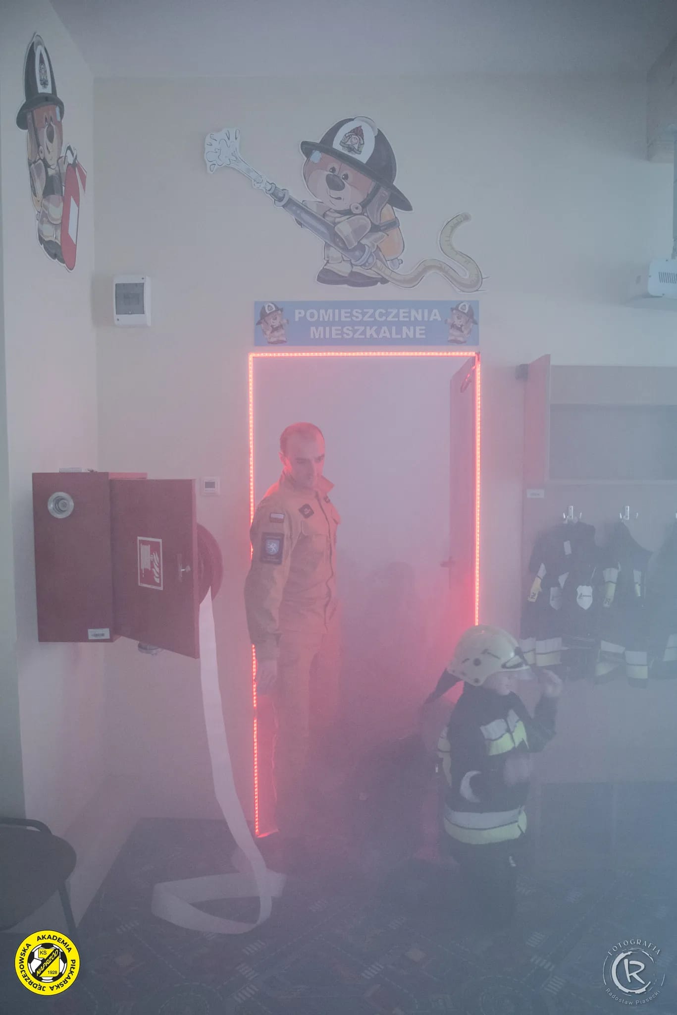Podczas prowadzonych zajęć na sali edukacyjnej „Ognik” dzieci dowiedziały się w jakich okolicznościach najczęściej powstają pożary, poruszono także tematykę kształtowania prawidłowych zachowań i nawyków w sytuacji zagrożenia życia i zdrowia. Zaprezentowano również mobilny symulator zagrożeń pożarowych, który niewątpliwe zadziałał na wyobraźnię i wzbudził duże zainteresowanie. Symulator umożliwił dynamiczną prezentację zagrożeń pożarowych i innych niebezpiecznych zdarzeń, jakie mogą mieć miejsce w domu jednorodzinnym.