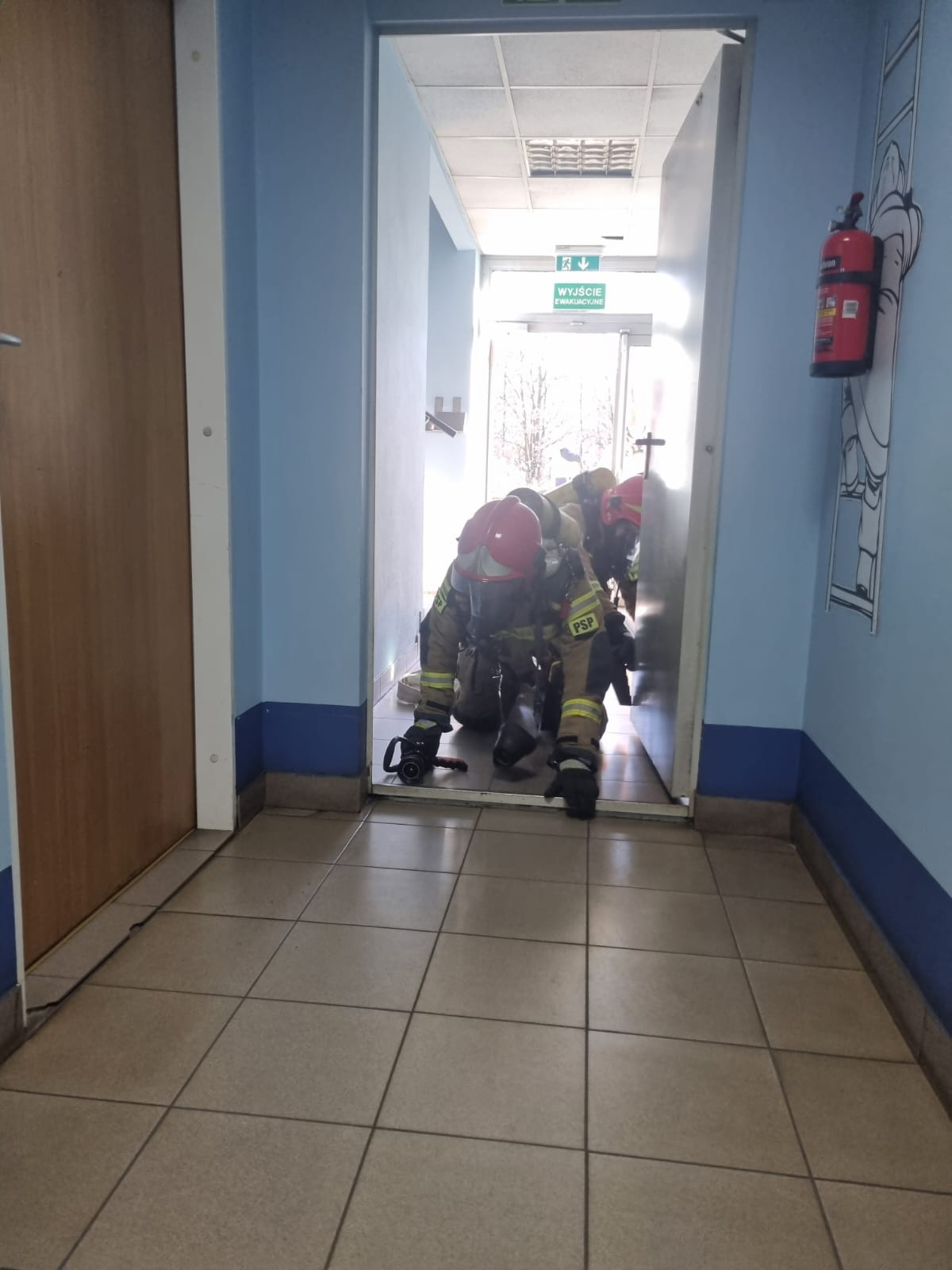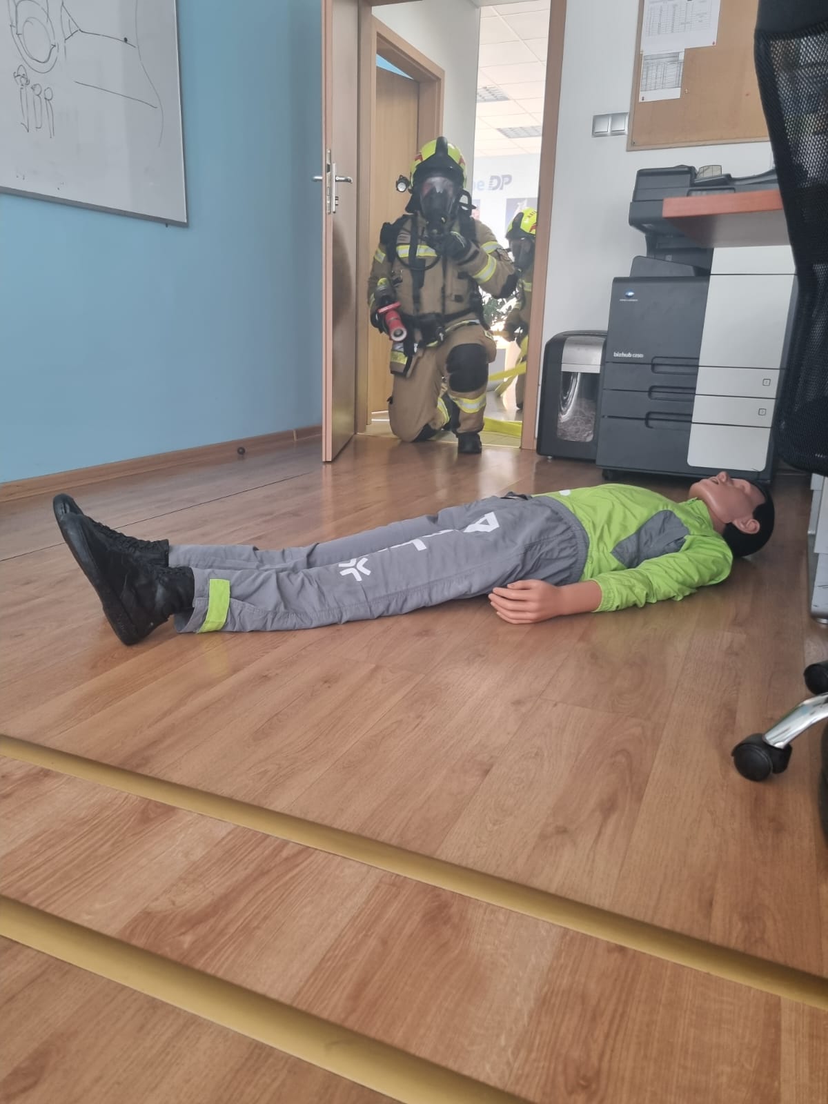 Pierwszym założeniem do ćwiczeń był scenariusz pożaru, który wybuchł w budynku biurowym na terenie zakładu. W początkowej fazie dyrekcja obiektu przeprowadziła ewakuację pracowników zgodnie z obowiązującymi procedurami bezpieczeństwa. Po przybyciu na miejsce zastępy straży pożarnej przystąpiły do przeszukiwania pomieszczeń biurowca, gdzie odnaleziono dwie osoby wymagające natychmiastowej ewakuacji. Poszkodowanych bezpiecznie wyniesiono na zewnątrz, a następnie wdrożono medyczne działania ratownicze, koncentrując się na udzieleniu kwalifikowanej pierwszej pomocy.