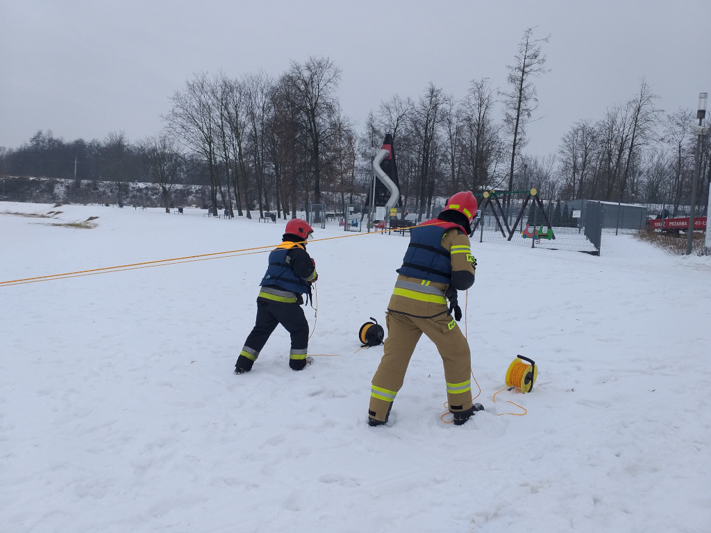 Strażacy z Jednostki Ratowniczo-Gaśniczej w Jędrzejowie rozpoczęli cykl szkoleń na akwenach wodnych w porze zimowej. Celem prowadzonych ćwiczeń było doskonalenie technik związanych z wydobywaniem osób, pod którymi załamał się lód, poruszaniem się na lodzie oraz możliwość wykorzystania sprzętu będącego na wyposażeniu Jednostki Ratowniczo-Gaśniczej w tego typu zdarzeniach. Ponadto strażacy przygotowują się tym samym do ewentualnych działań ratowniczych związanych z aktualną sytuacją meteorologiczną oraz ze zbliżającym się okresem zwiększonego prawdopodobieństwa wystąpienia powodzi i lokalnych podtopień.