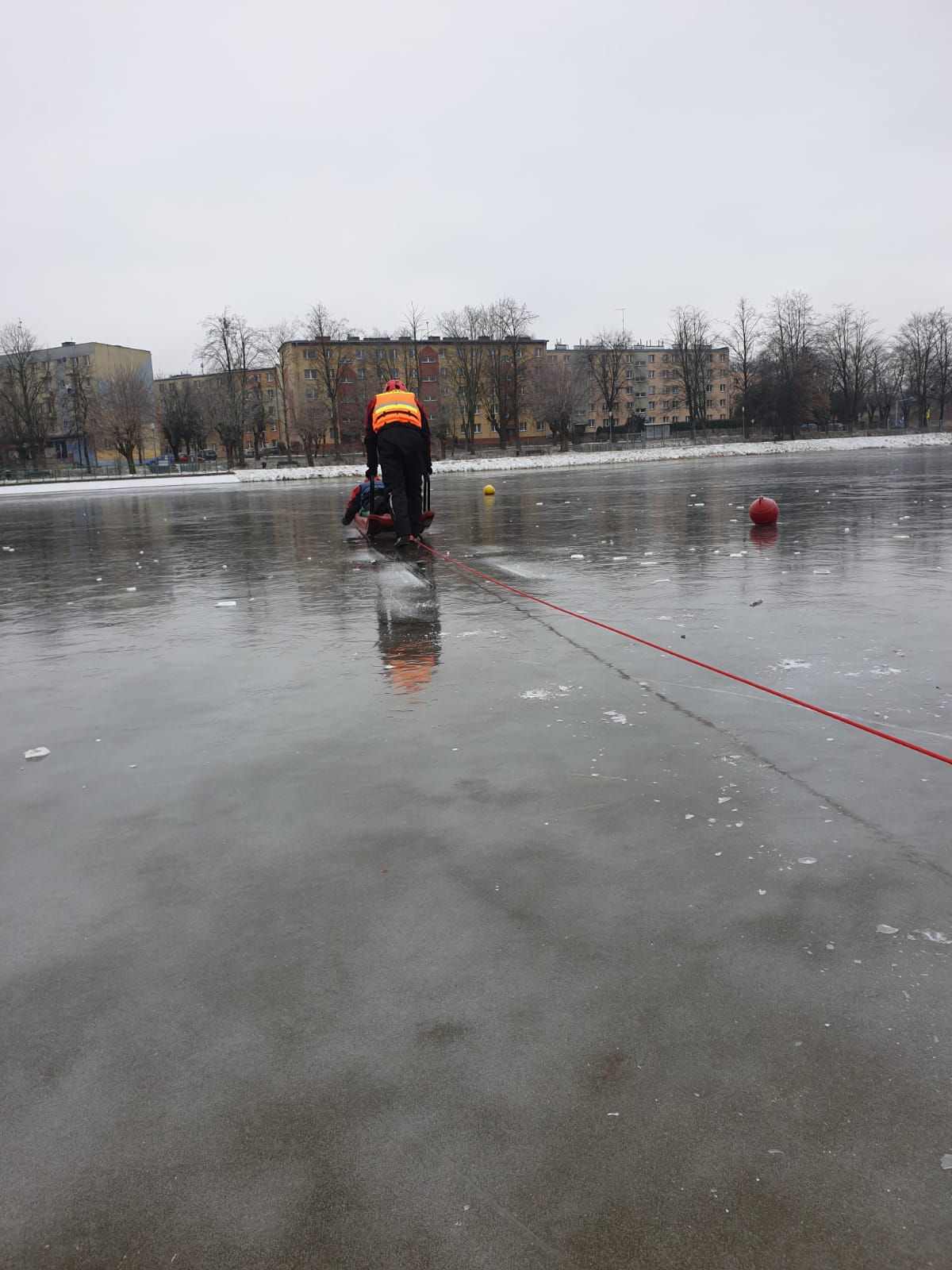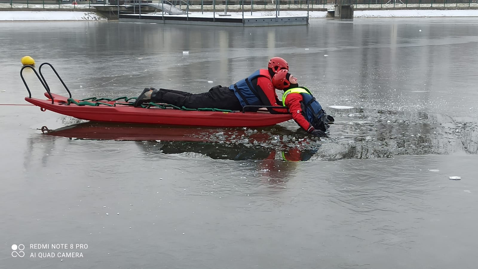 Strażacy z Jednostki Ratowniczo-Gaśniczej w Jędrzejowie rozpoczęli cykl szkoleń na akwenach wodnych w porze zimowej. Celem prowadzonych ćwiczeń jest doskonalenie technik związanych z wydobywaniem osób, pod którymi załamał się lód, poruszaniem się na lodzie oraz możliwość wykorzystania sprzętu będącego na wyposażeniu jednostki ratowniczo-gaśniczej w tego typu zdarzeniach. Ponadto strażacy przygotowują się tym samym do ewentualnych działań ratowniczych związanych z aktualną sytuacją meteorologiczną oraz ze zbliżającym się okresem zwiększonego prawdopodobieństwa wystąpienia powodzi i lokalnych podtopień.